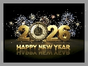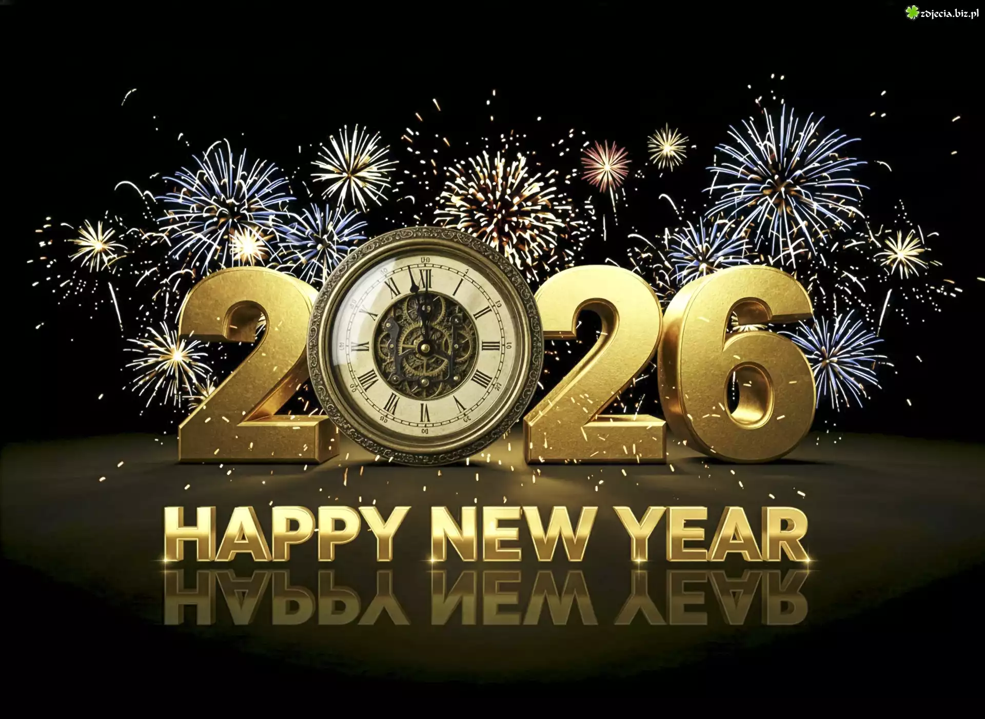 Zdjęcie, Napis, Happy New Year, Nowy Rok, 2026, Zegar, Fajerwerki, Sylwester