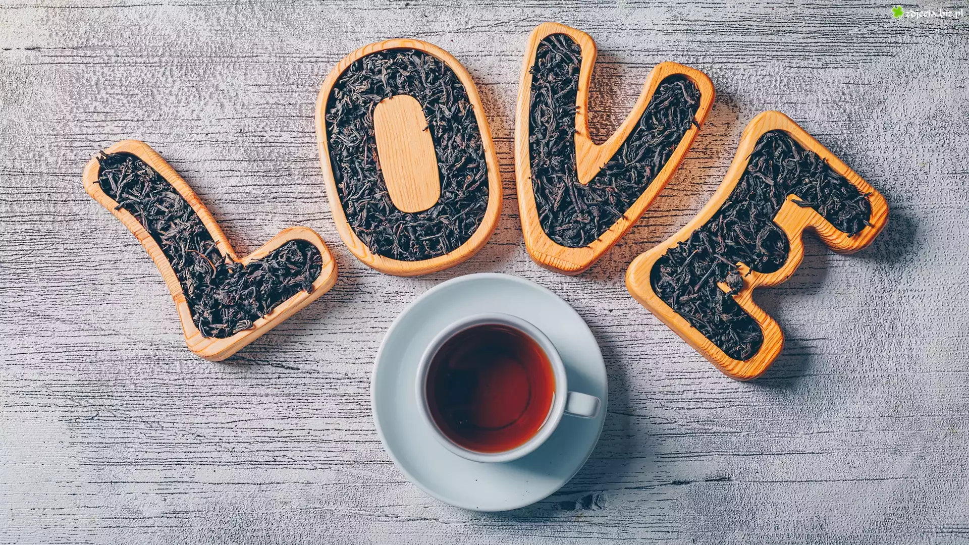 Zdjęcie Napis, Love, Herbata, Filiżanka