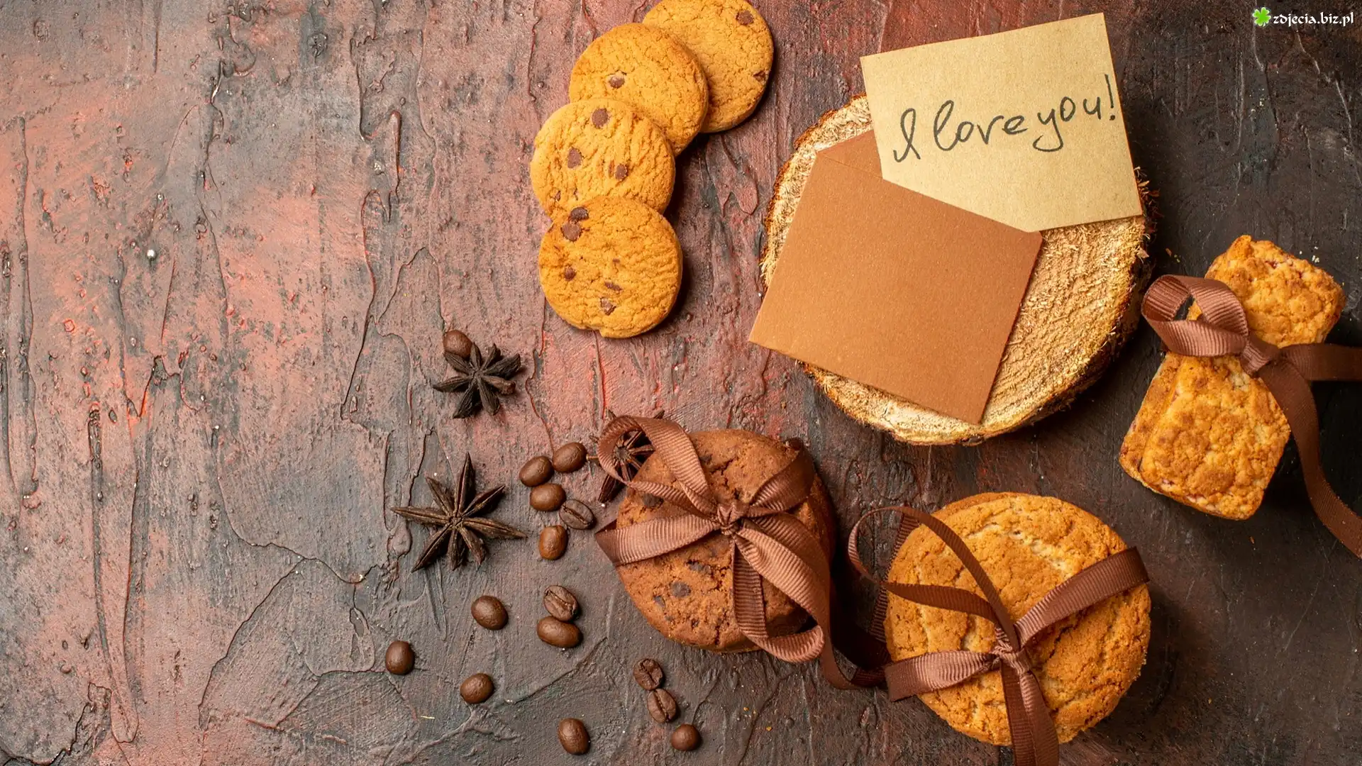 Zdjęcie Ciasteczka, Drewno, Kartka, Napis, I love you