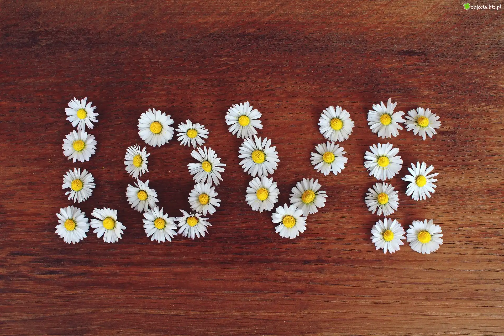 Zdjęcie Napis, Love, Miłość, Stokrotki