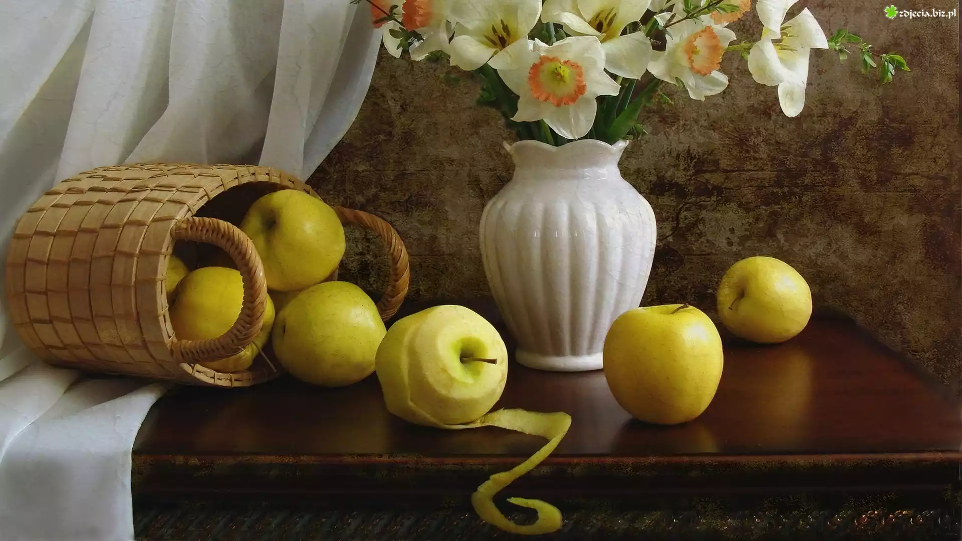 Zdjęcie Narcyzy, Kosz, Jabłka, Wazon