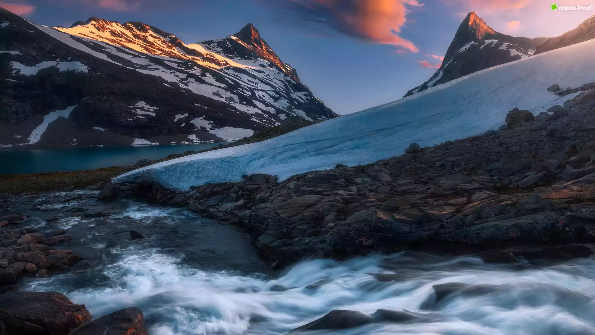 Zdjęcie Park Narodowy Jotunheimen, Góry Jotunheimen, Rzeka, Zima, Norwegia