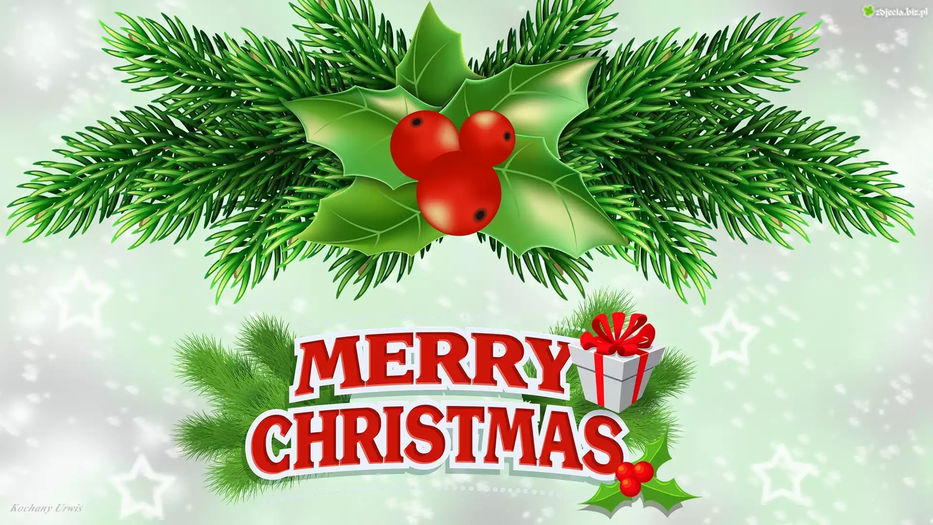 Zdjęcie Boże Narodzenie, Napis, Merry Christmas, Gałązki, Prezent, 2D