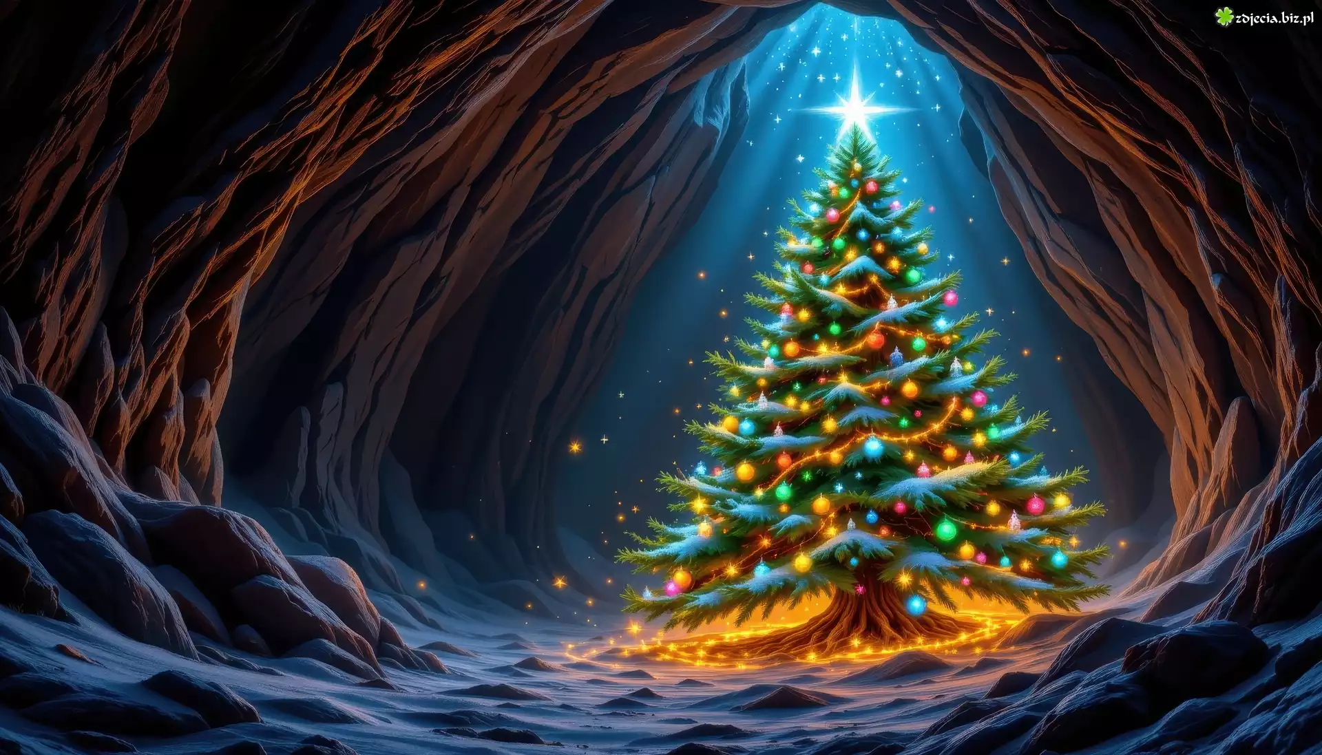 Zdjęcie Jaskinia, Skały, Boże Narodzenie, Choinka, AI