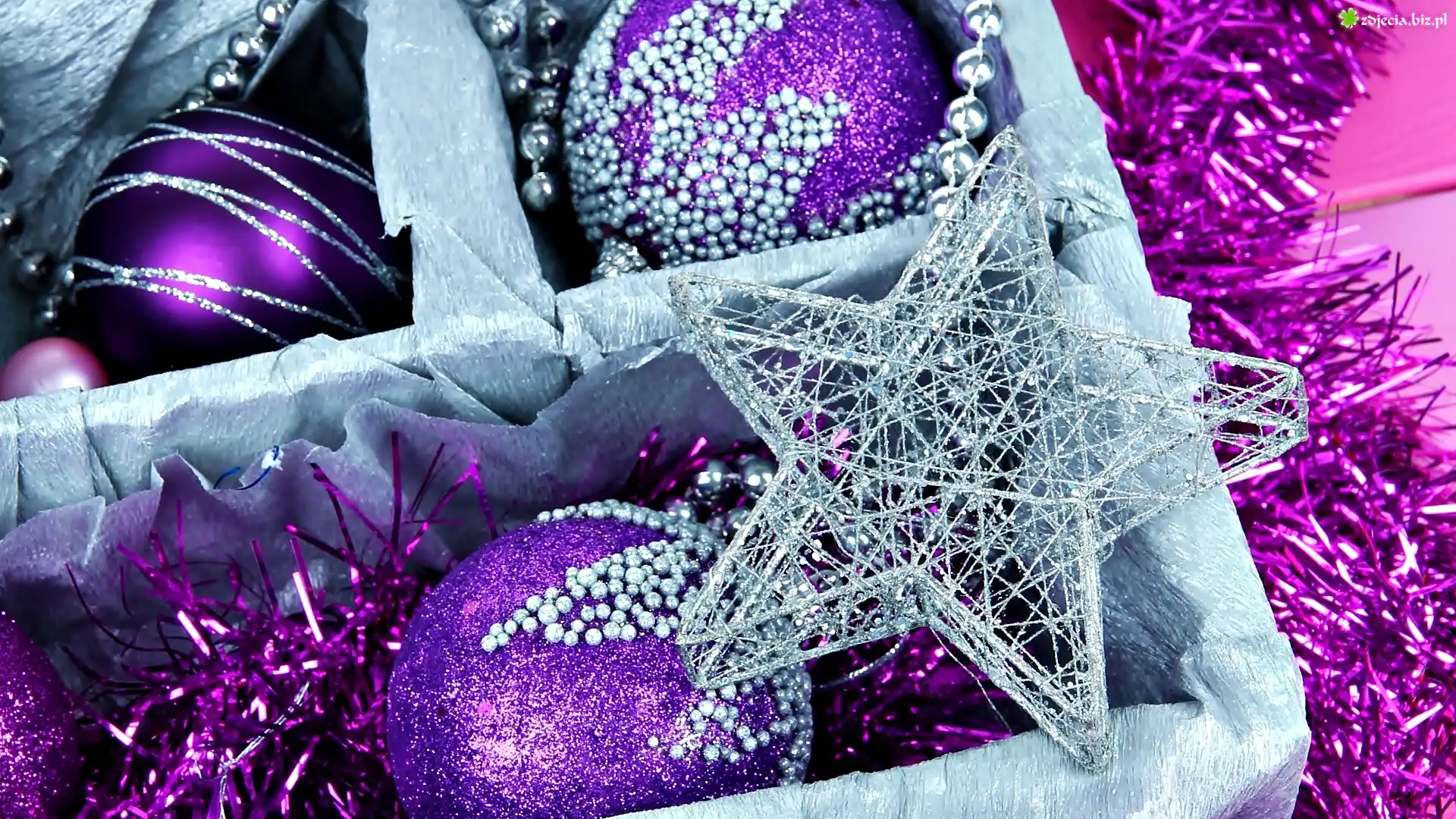 Zdjęcie Boże Narodzenie, Dekoracje, Bombki, Gwiazda, Koraliki, Łańcuch