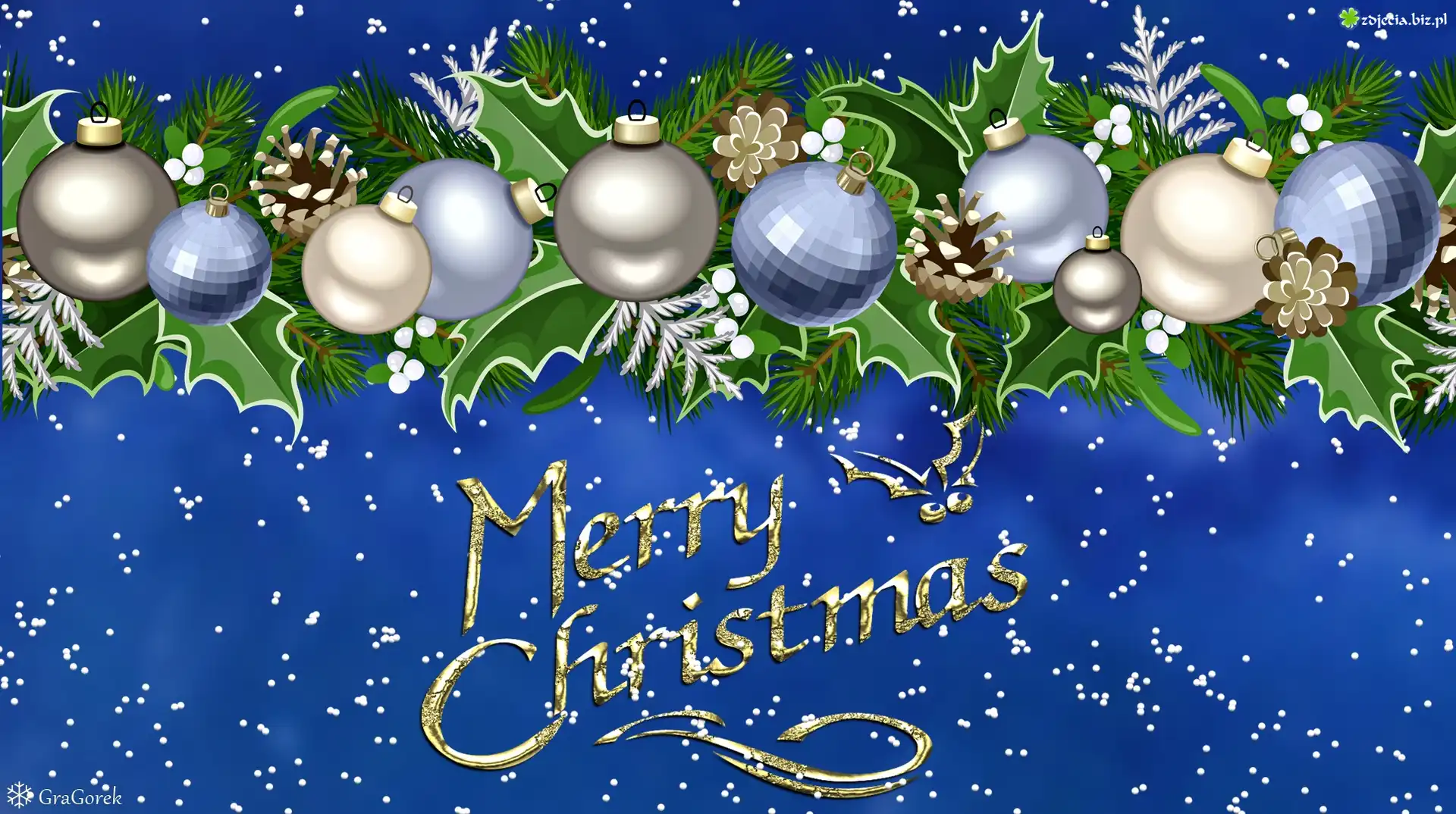 Zdjęcie Życzenia, Girlanda, Bombki, Śnieg, Święta, Grafika, Boże Narodzenie