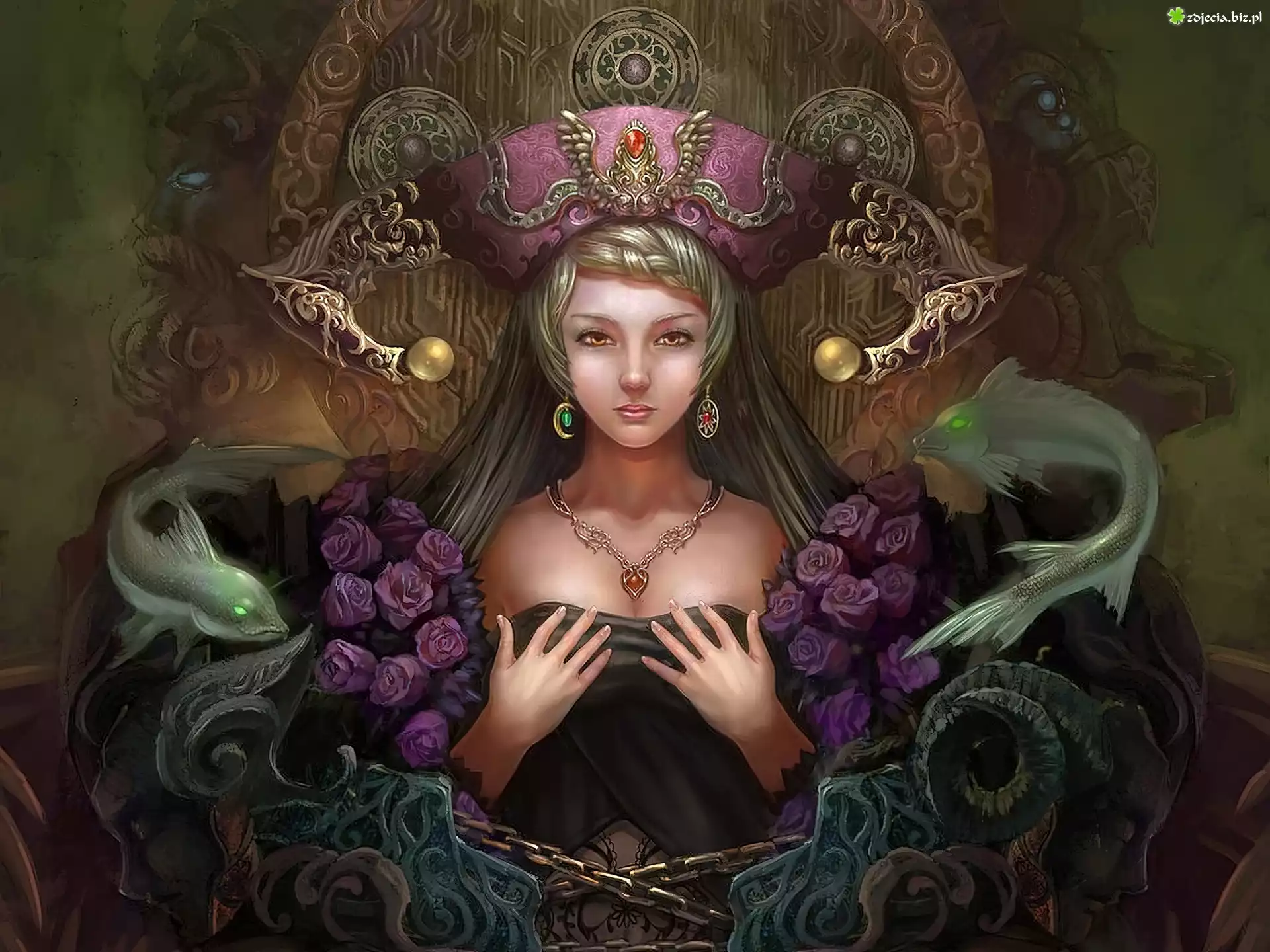 Zdjęcie Kobieta, Naszyjnik, Rybki