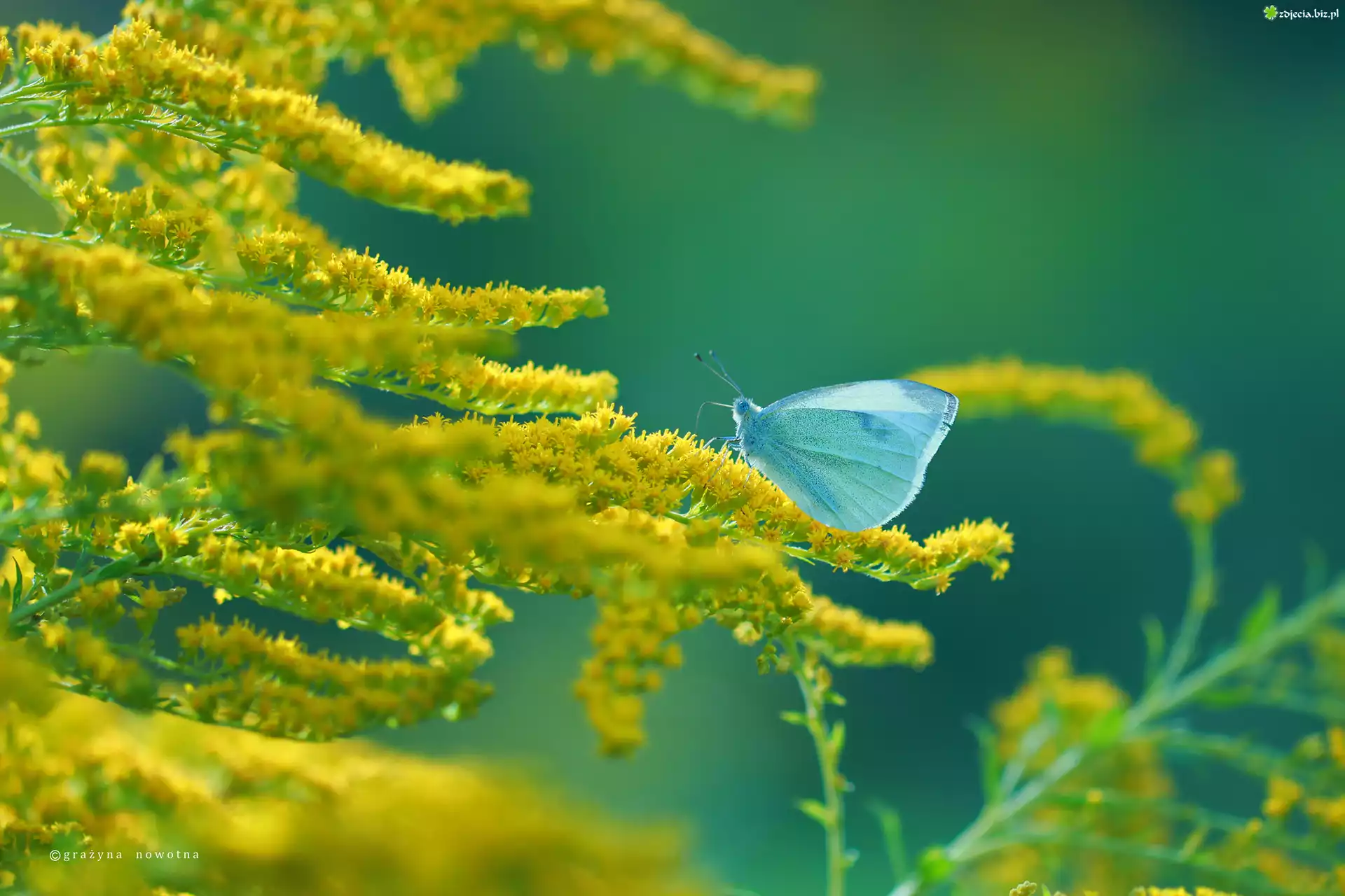 Zdjęcie Nawłoć, Żółte, Kwiaty, Motyl, Bielinek