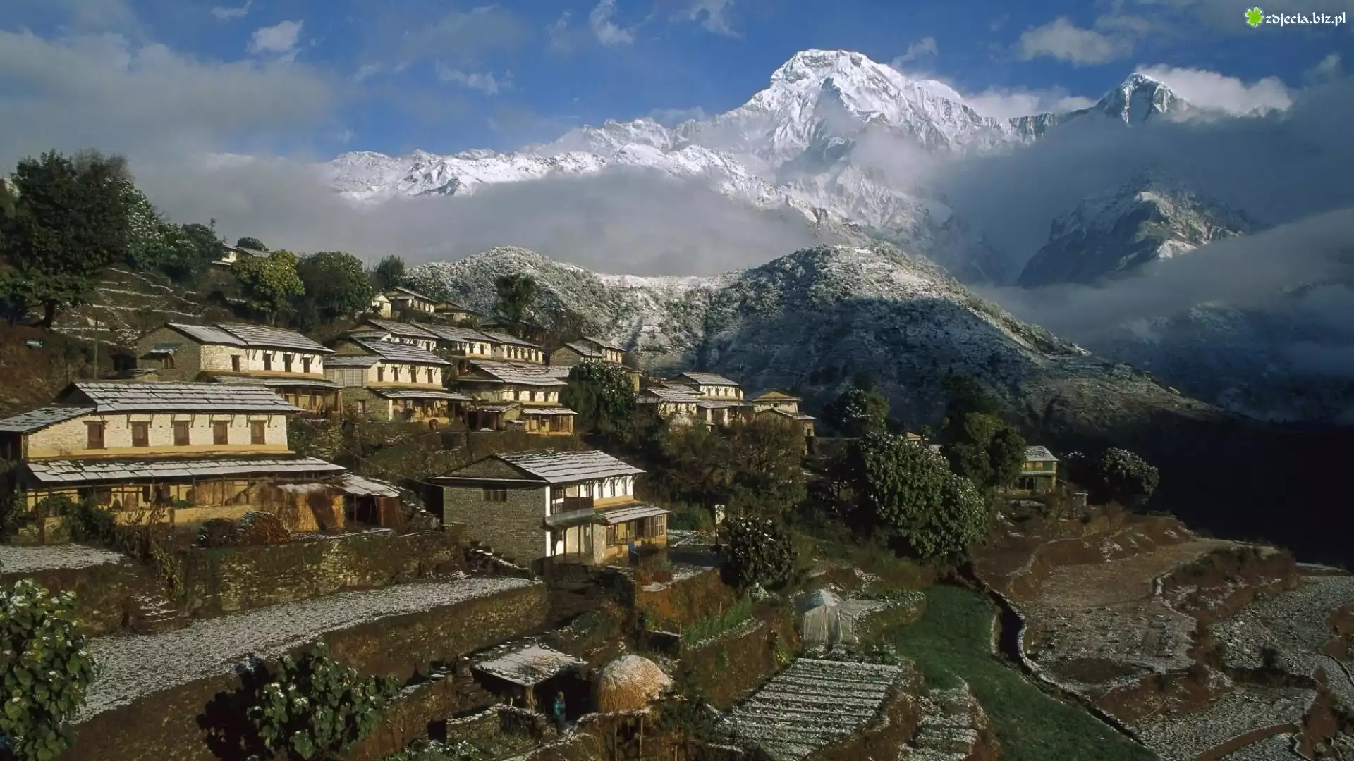 Zdjęcie Nepal, Ghrung, Miasteczko, Domy, Góry