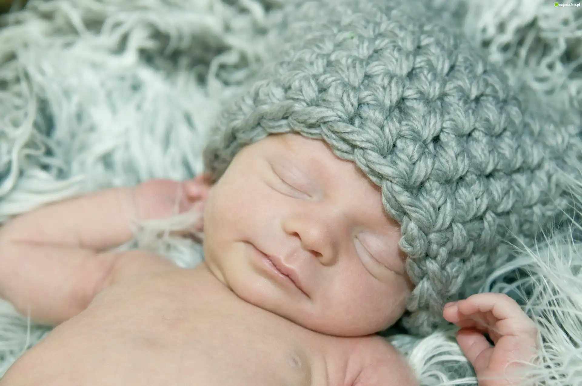 Zdjęcie Śpiące, Niemowlę, Niebieska, Czapeczka