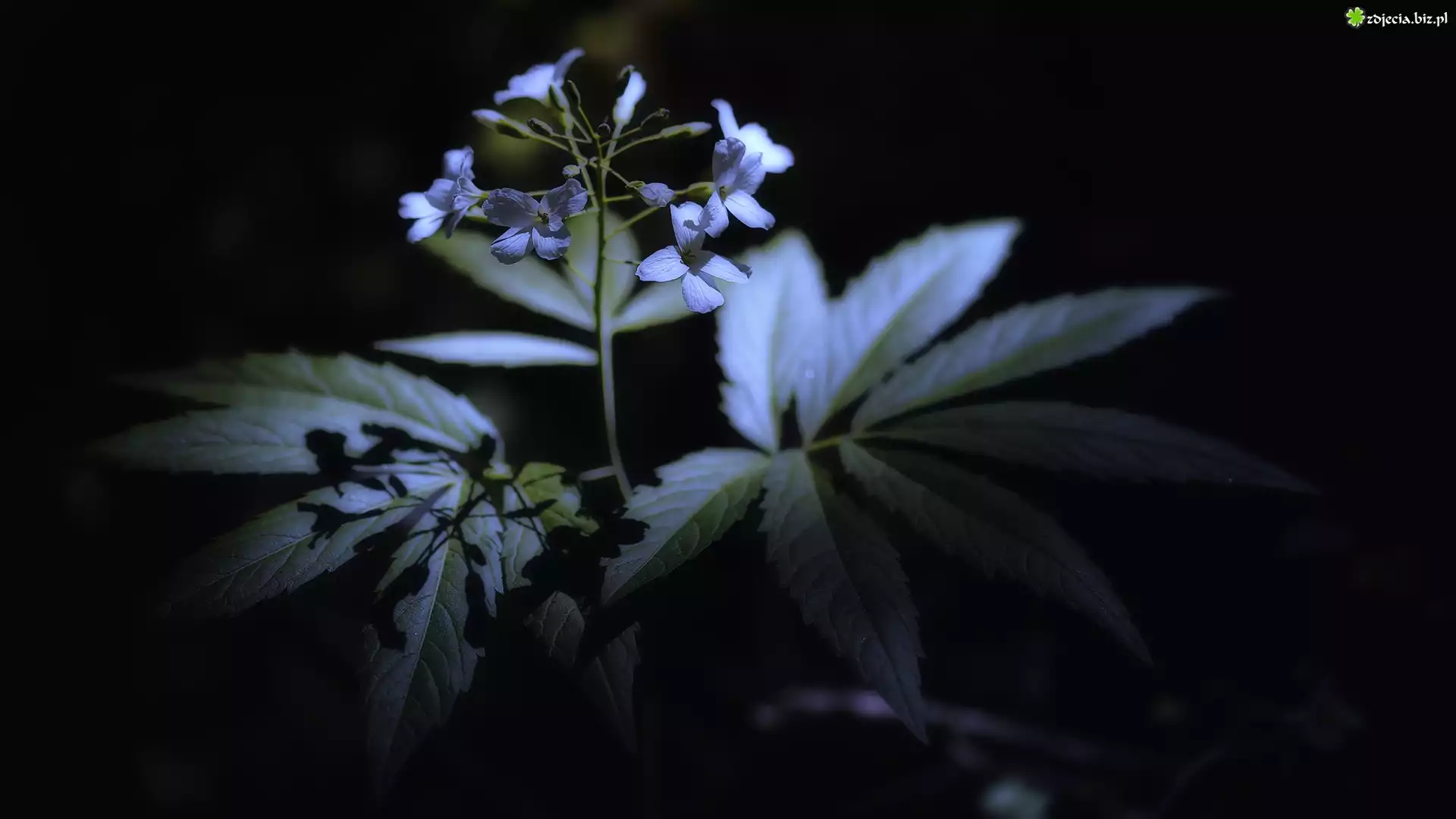 Zdjęcie Niebieski, Kwiat, Liście, Czarne, Tło