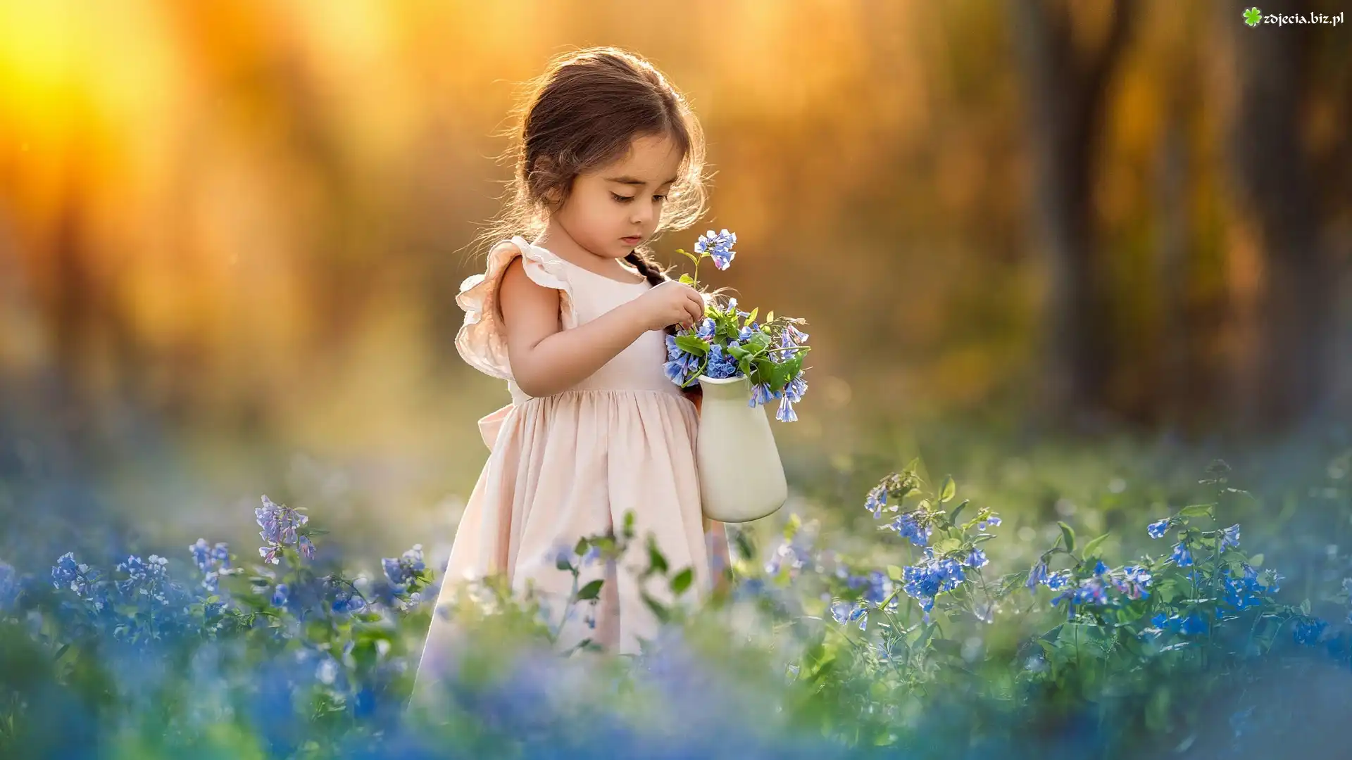 Zdjęcie Dziewczynka, Niebieskie, Kwiaty