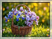 Zdjęcie, Kwiaty, Niebieskie, Irysy, Wiklinowy, Koszyk