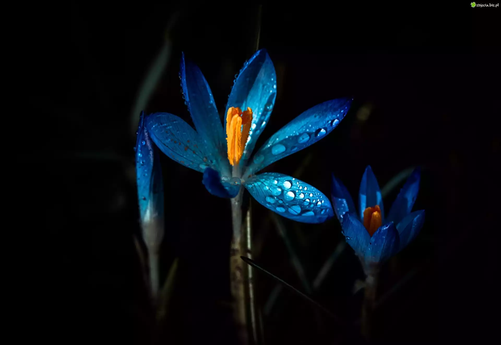 Zdjęcie Niebieskie Kwiaty, Krople, Światło