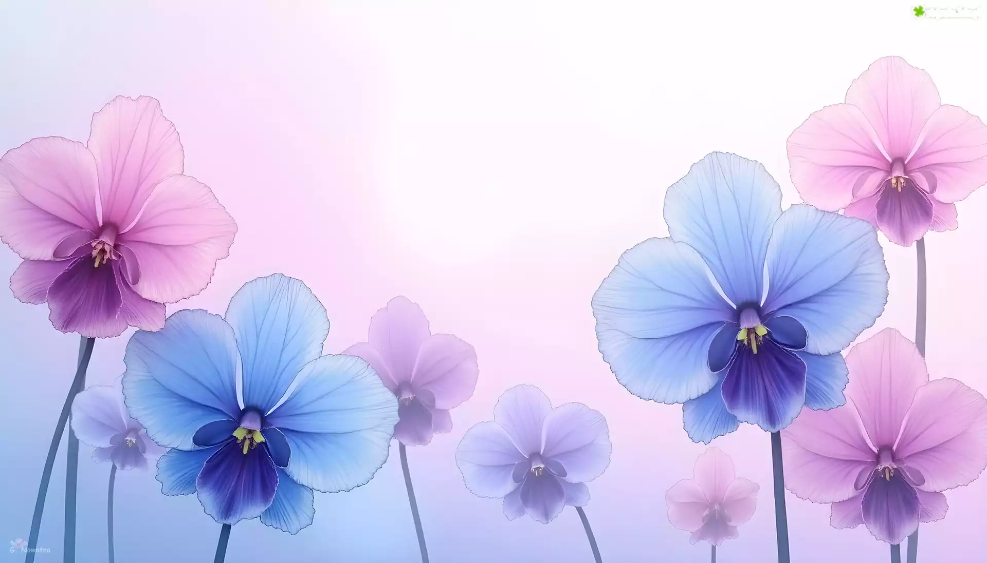 Zdjęcie Różowe, Niebieskie, Kwiaty, Grafika AI