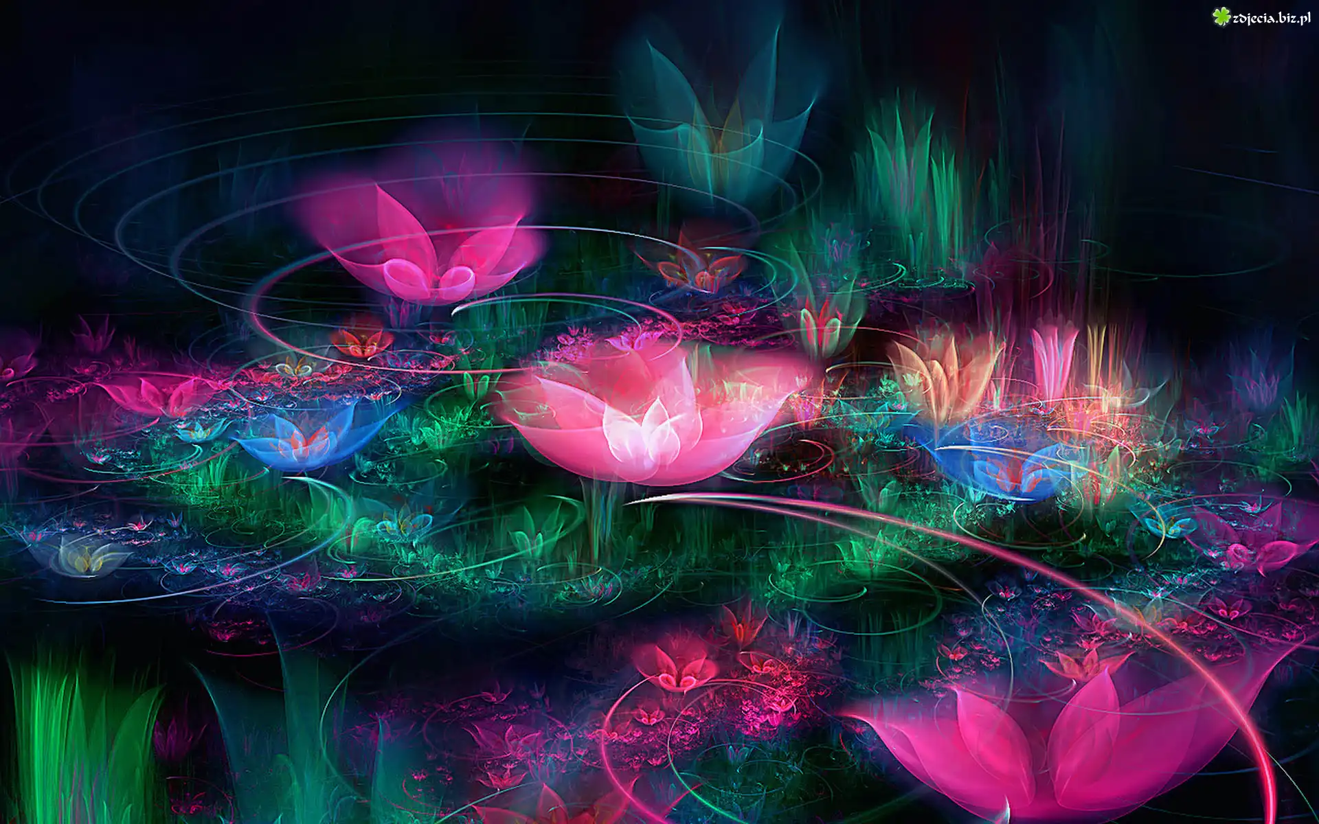 Zdjęcie Niebieskie, Zielone, Różowe, Kwiaty, Wstęgi