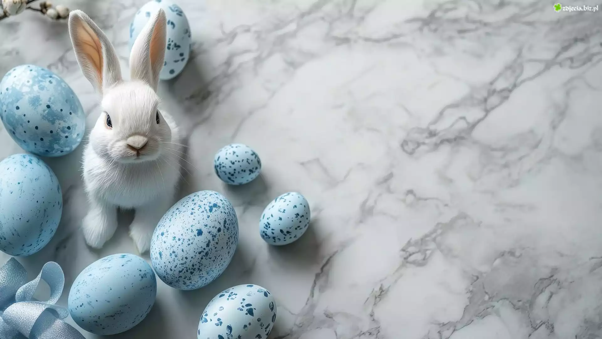 Zdjęcie Wielkanoc, Niebieskie, Pisanki, Biały, Królik