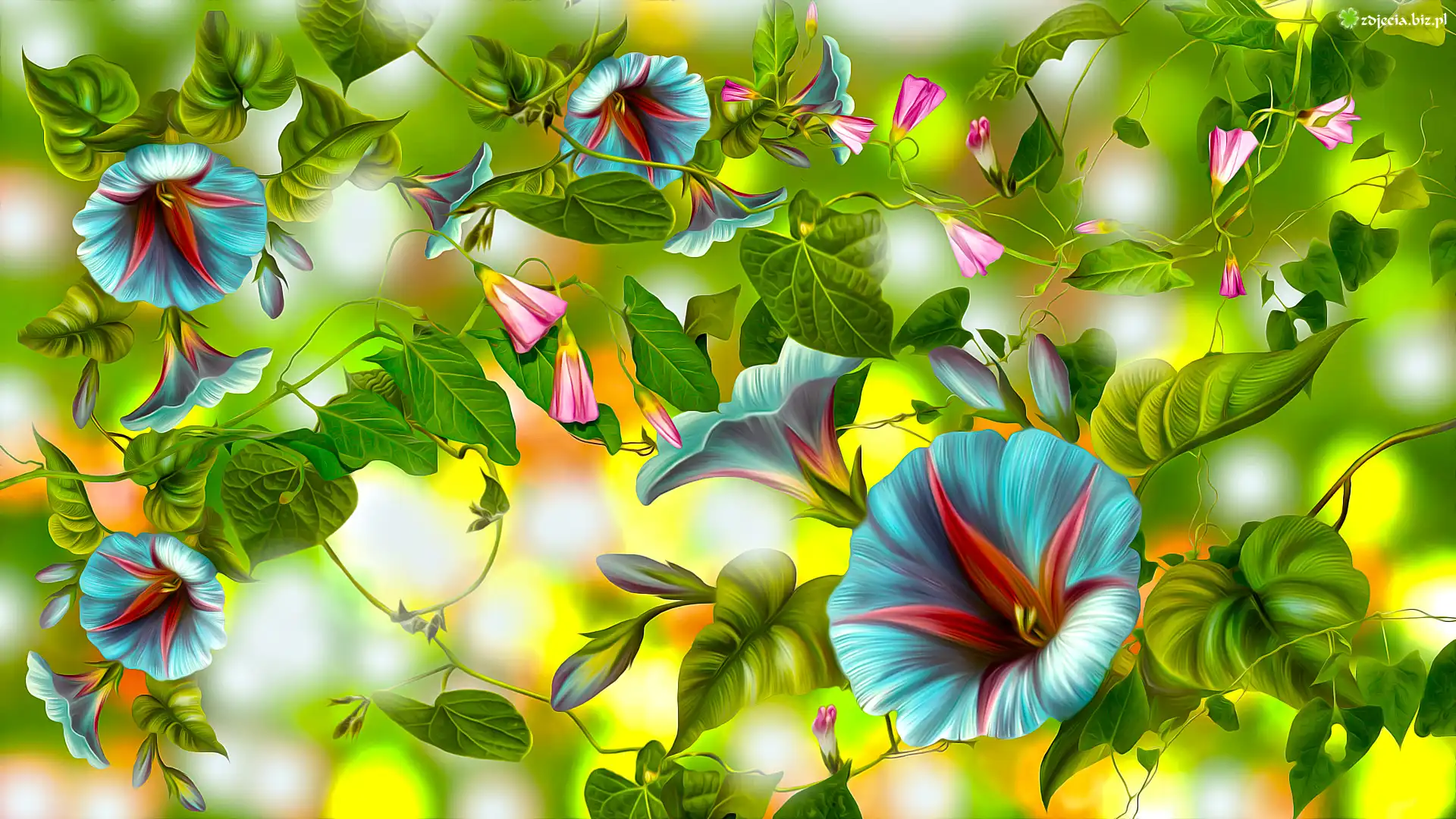 Zdjęcie Niebieskie, Kwiaty, Powoje, Grafika