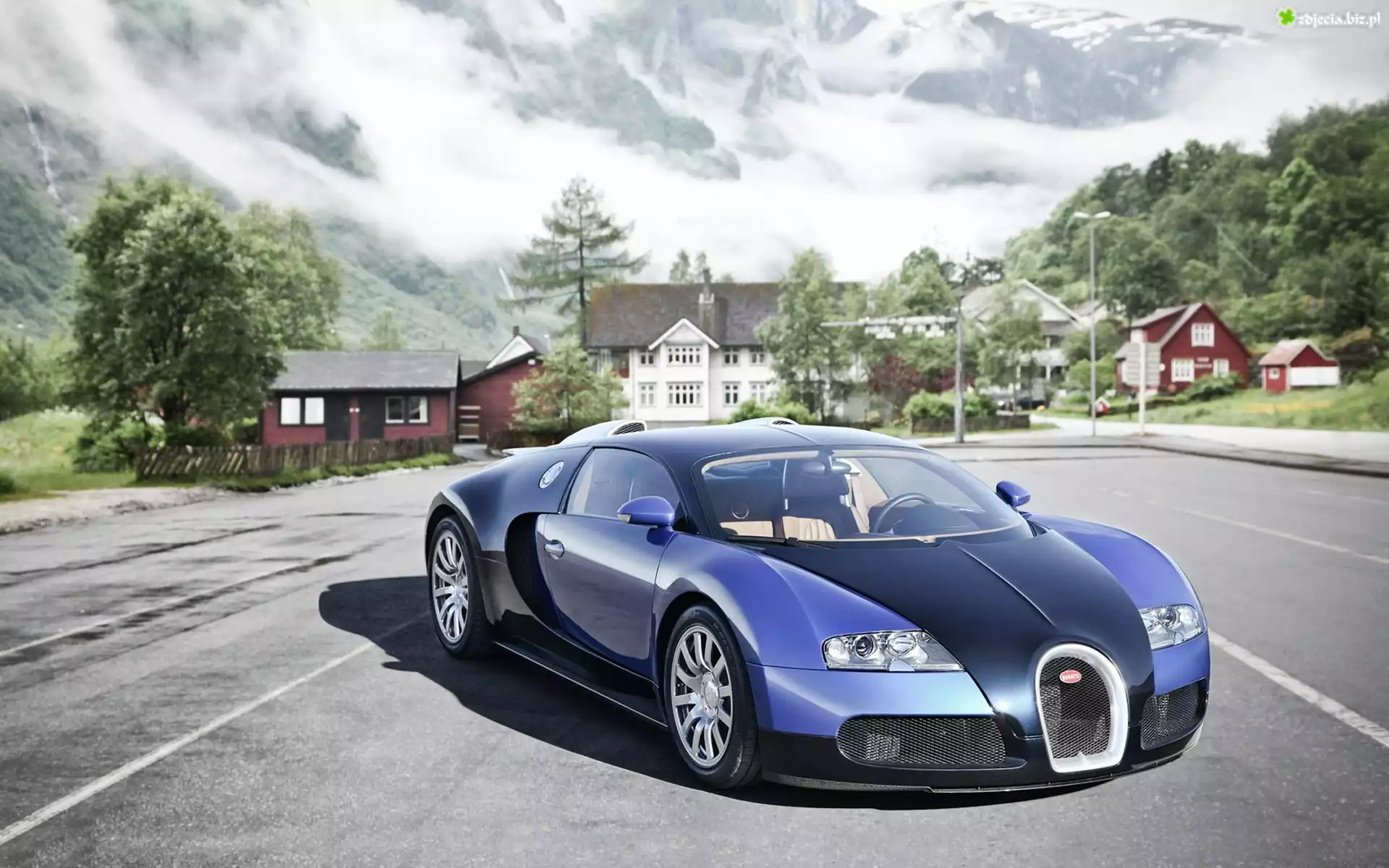 Zdjęcie Niebieskie, Bugatti, Veyron, Ulica, Domy