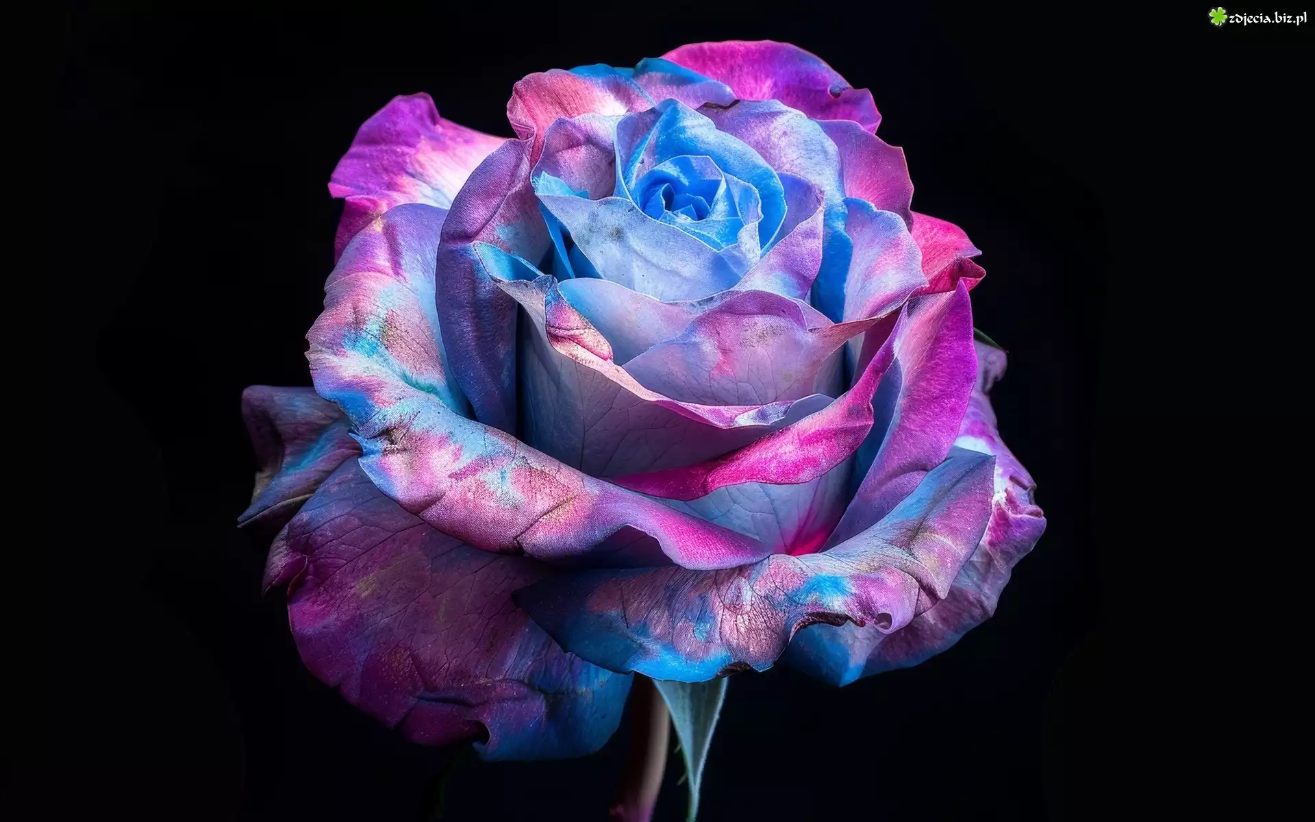 Zdjęcie Róża, Niebiesko-różowa, Czarne, Tło
