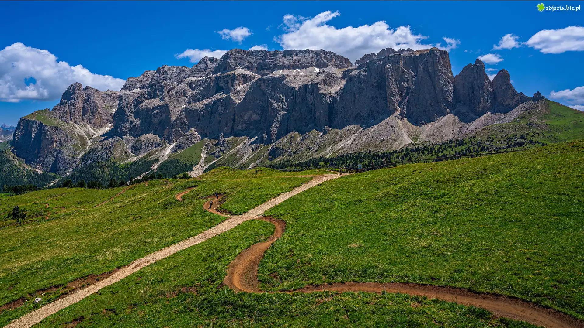 Zdjęcie Włochy, Góry, Dolomity, Niebo, Trawa, Dwie, Ścieżki