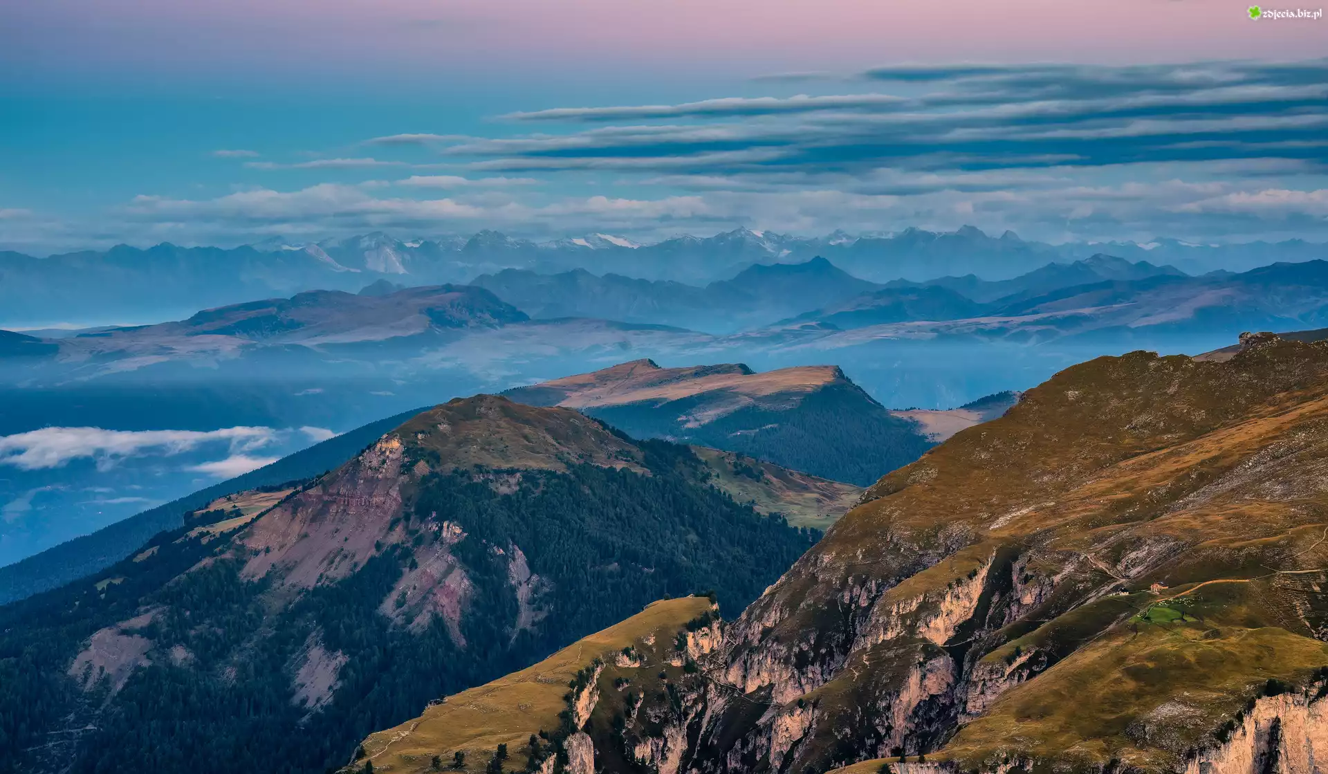Zdjęcie Góry, Szczyty, Chmury, Niebo
