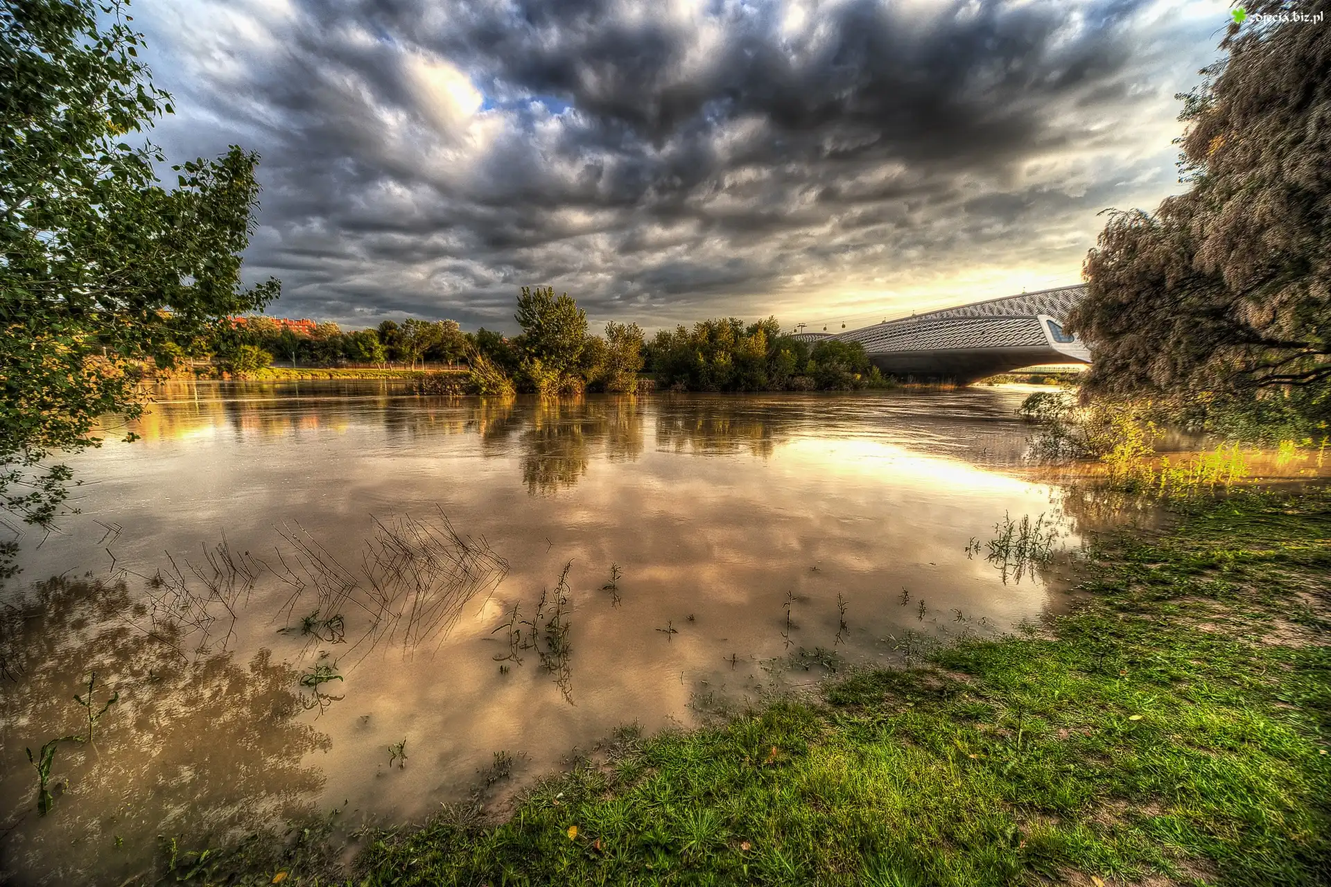Zdjęcie Niebo, Chmury, Rzeka, Most, HDR, Saragossa