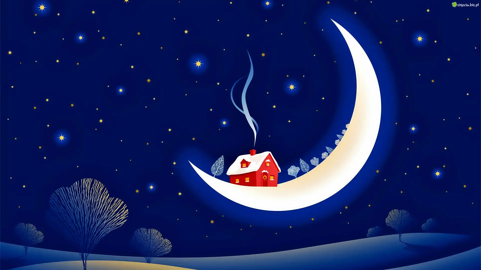 Zdjęcie Niebo, Gwiazdy, Domek, Na Księżycu