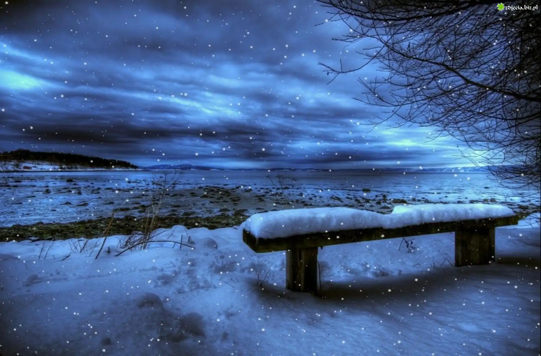 Zdjęcie Niebo, Zima, Ławka, Nad, Jeziorem