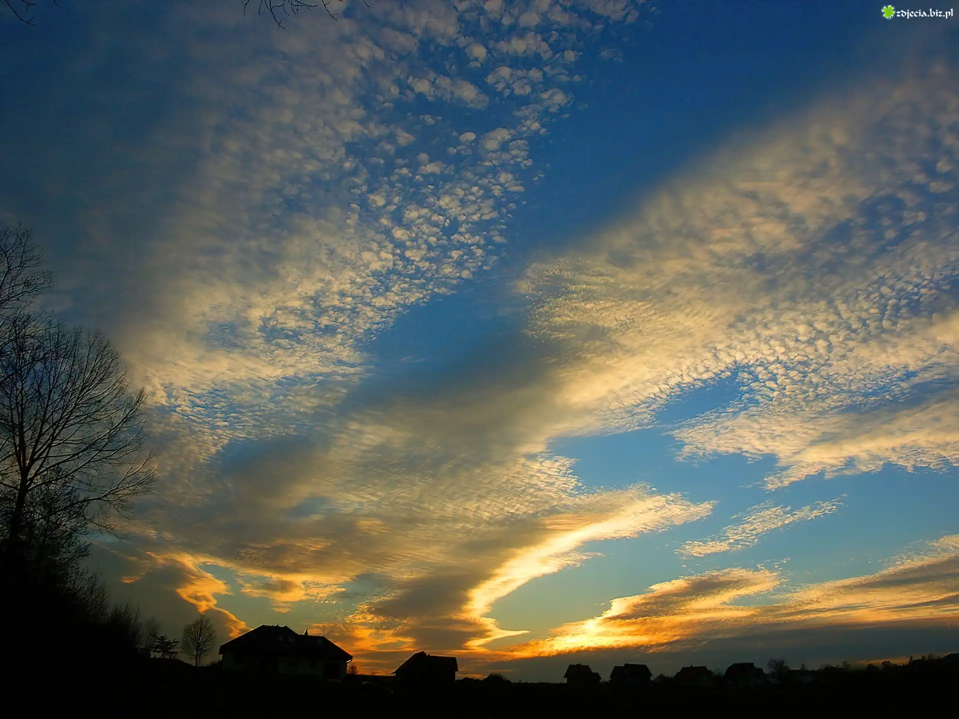 Zdjęcie Niebo, Chmury, Zachód, Słońca, Domy