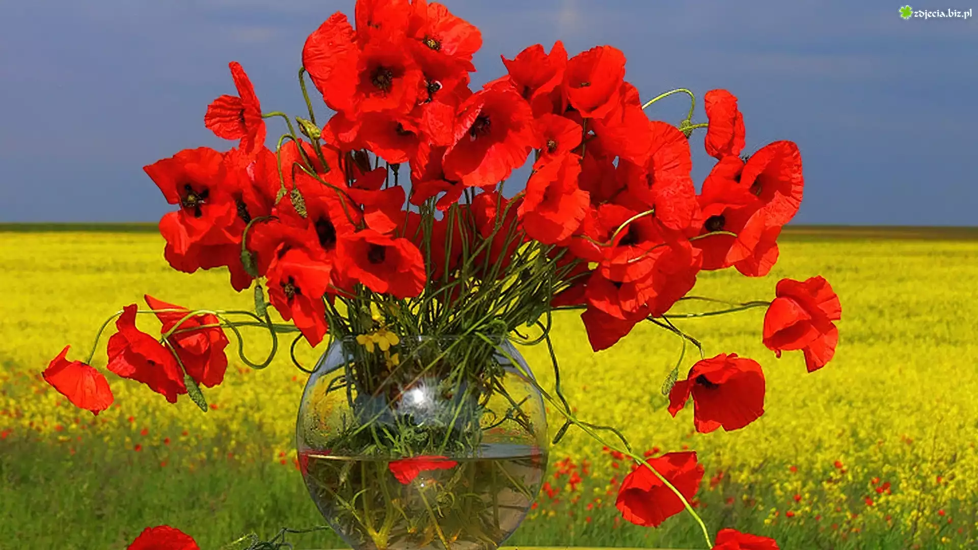 Zdjęcie Niebo, Łąka, Wazon, Maki