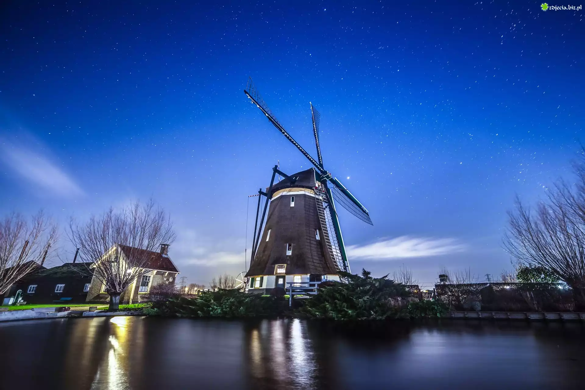 Zdjęcie Niebo, Gwiazdy, Woda, Wiatrak