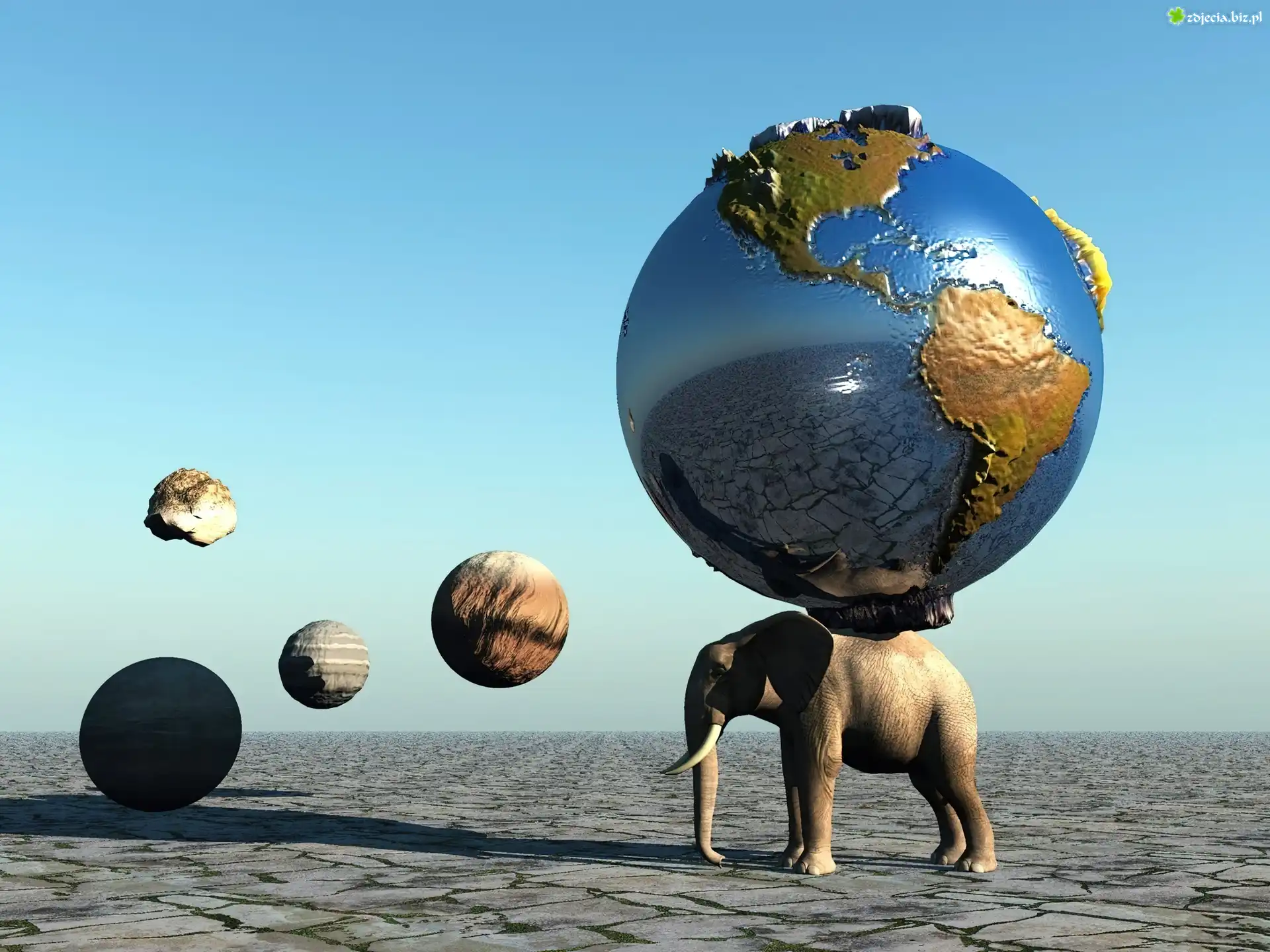 Zdjęcie Niebo, Słoń, Planety, Ziemia, 3D