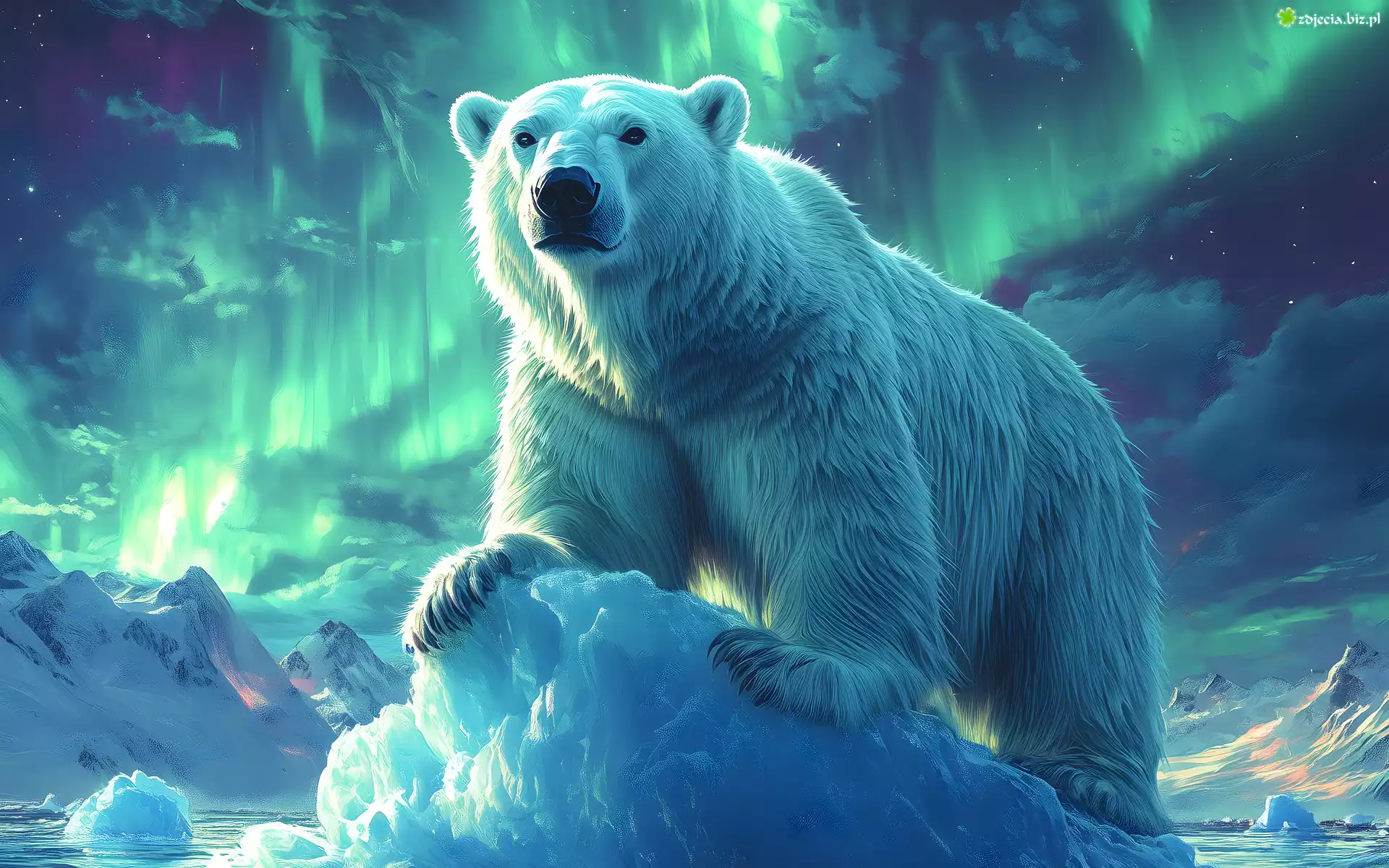 Zdjęcie Grafika, Niedźwiedź, Polarny, Zorza polarna