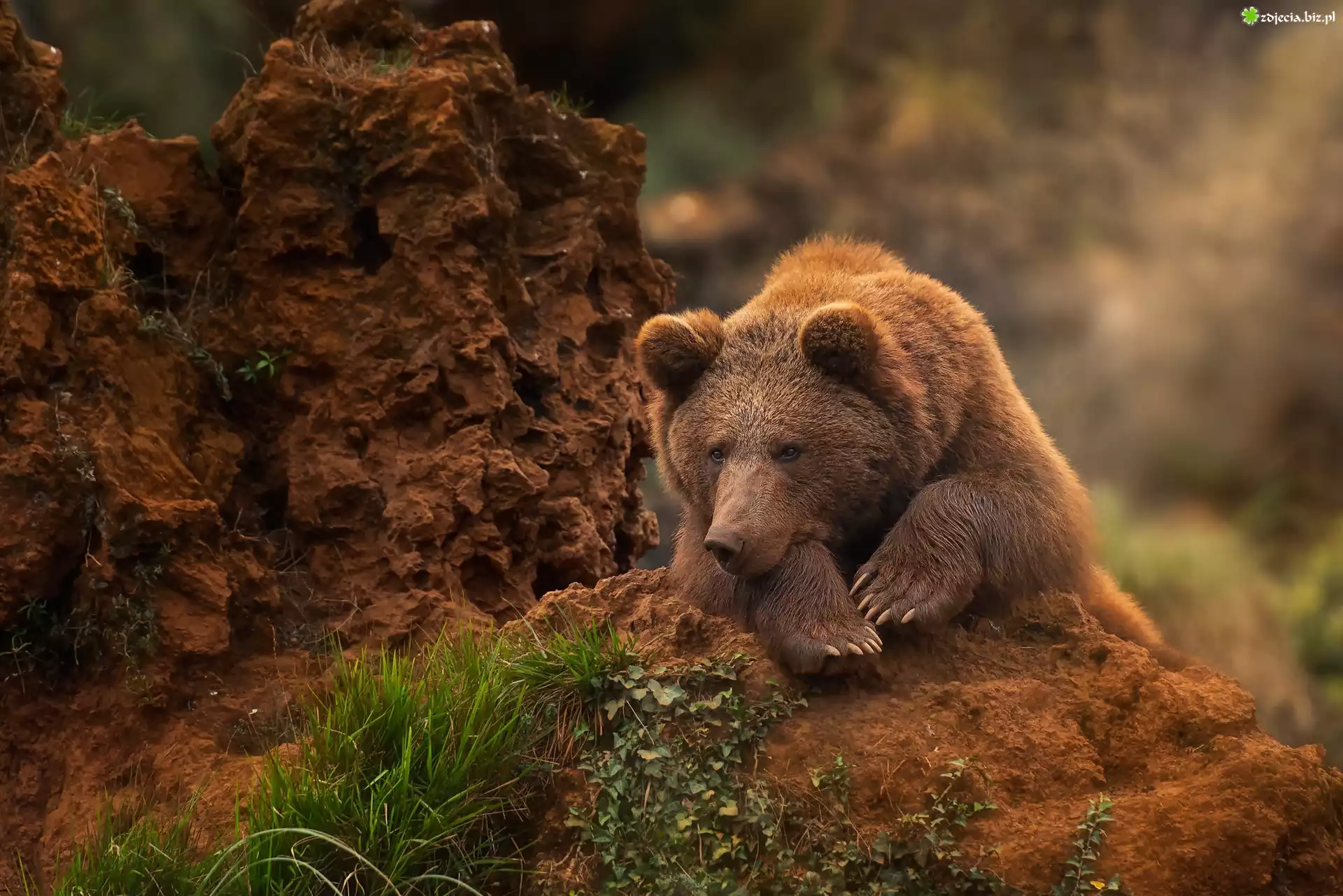 Zdjęcie Niedźwiedź brunatny, Skała, Trawa