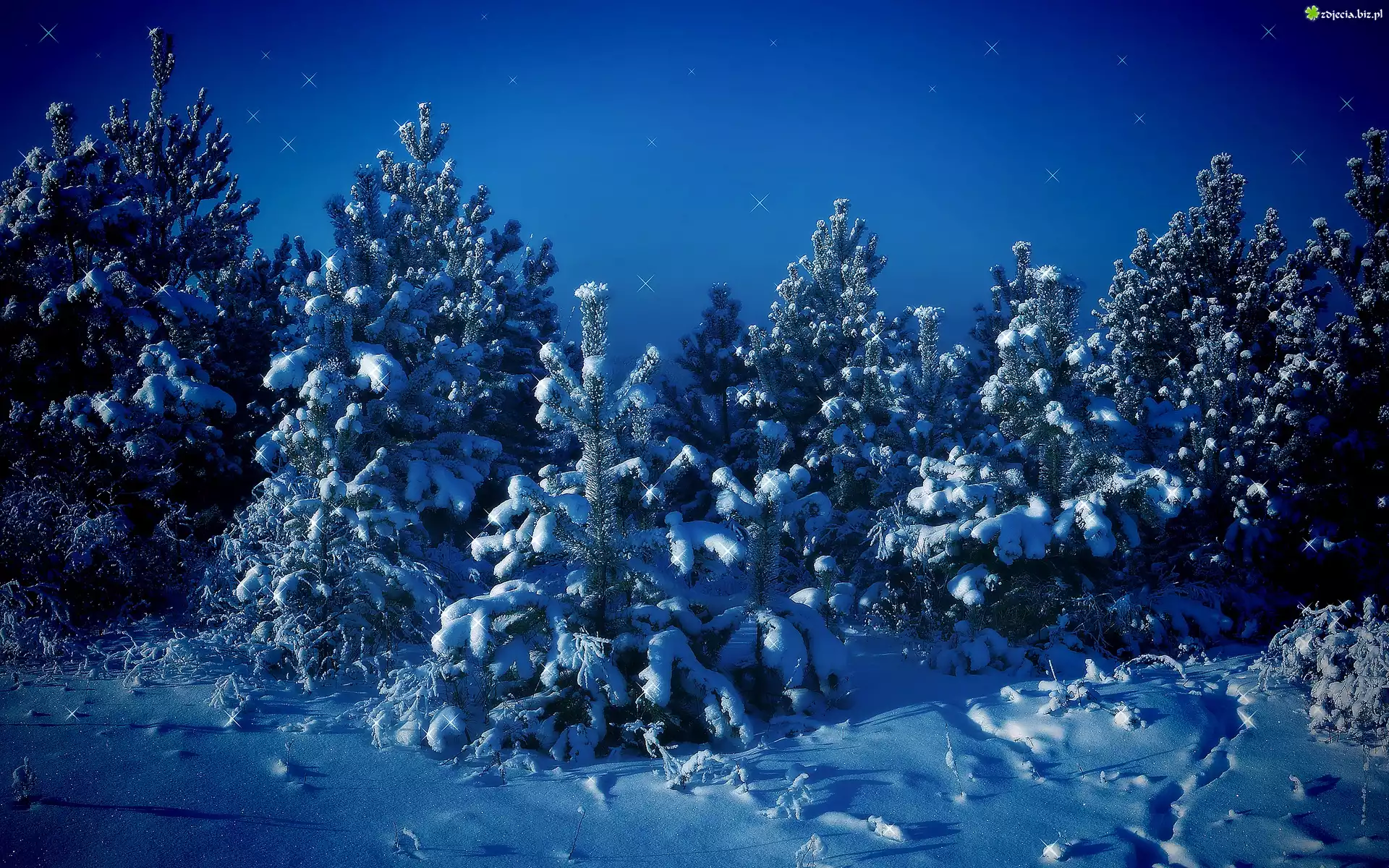 Zdjęcie Śnieg, Zima, Mróz, Drzewa, Las, Świerkowy