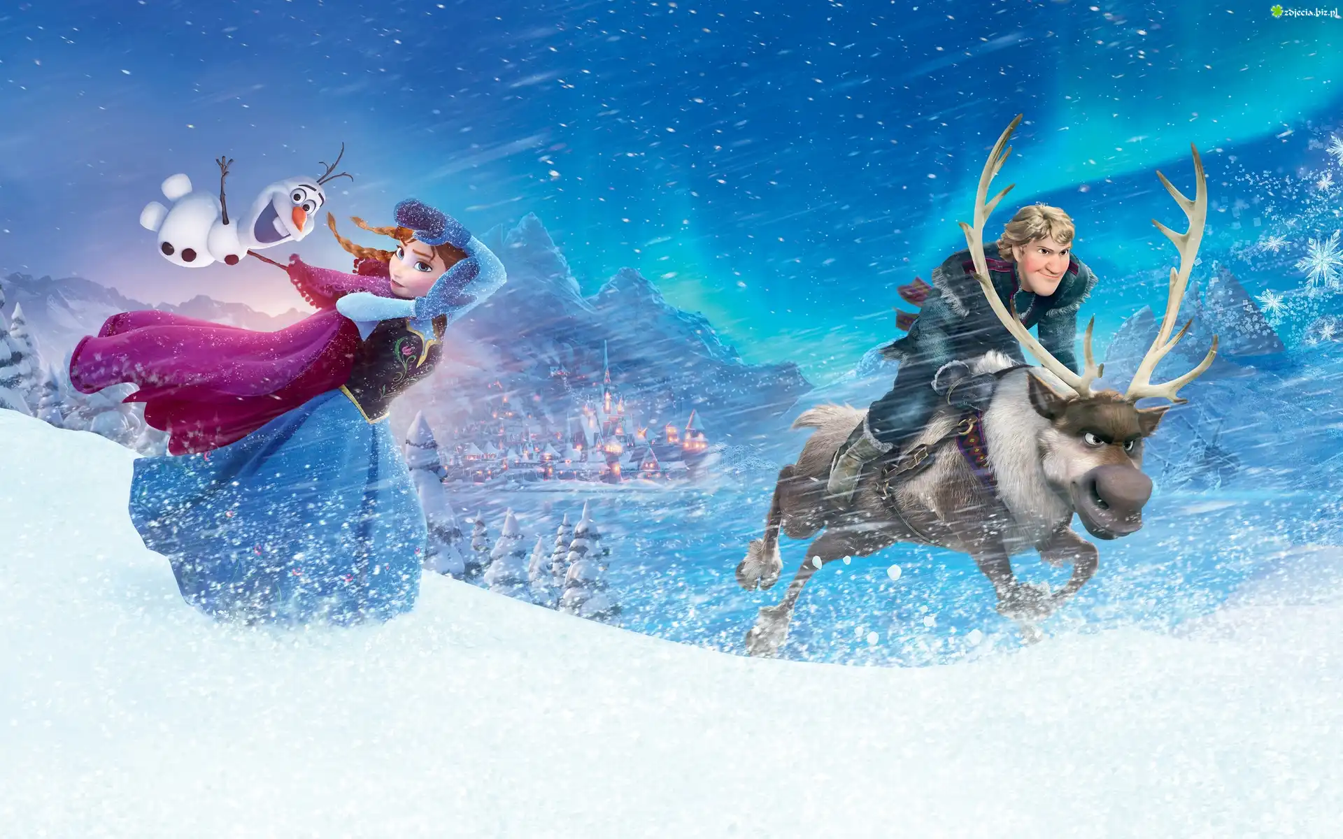 Zdjęcie Bajka, Kraina lodu, Frozen, Zima, Śnieg, Anna, Kristoff, Renifer Sven, Bałwan Olaf