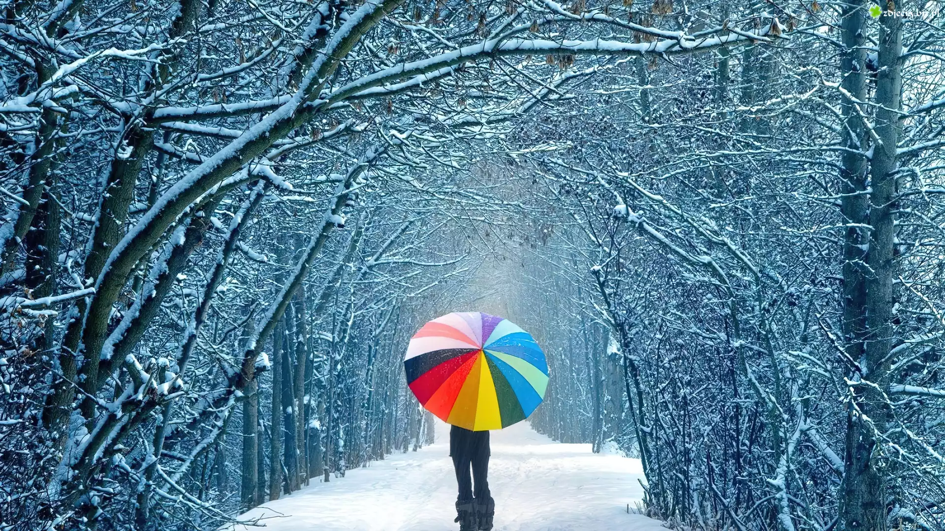 Zdjęcie Droga, Śnieg, Dziewczyna, Parasol