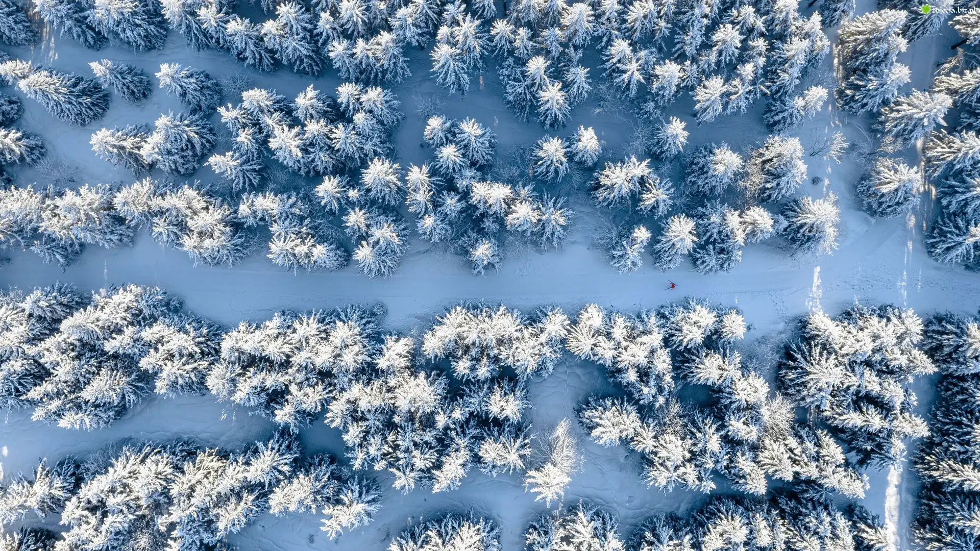 Zdjęcie Las, Śnieg, Zima, Narciarz, Z lotu ptaka