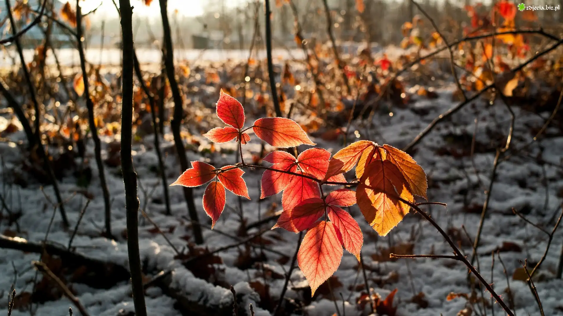 Zdjęcie, Liście, Śnieg, Gałęzie