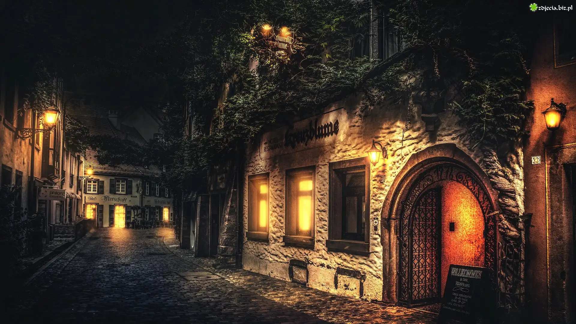 Zdjęcie Niemcy, Freiburg, Uliczka, Domy, Noc, Światła