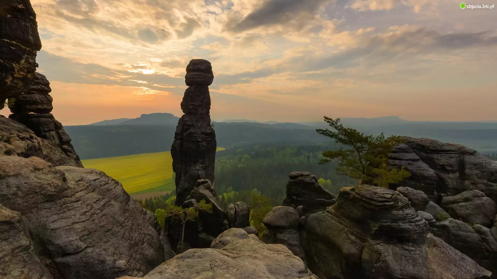 Zdjęcie Skały, Formacja, Drzewa, Góry Połabskie, Park Narodowy Saskiej Szwajcarii, Niemcy