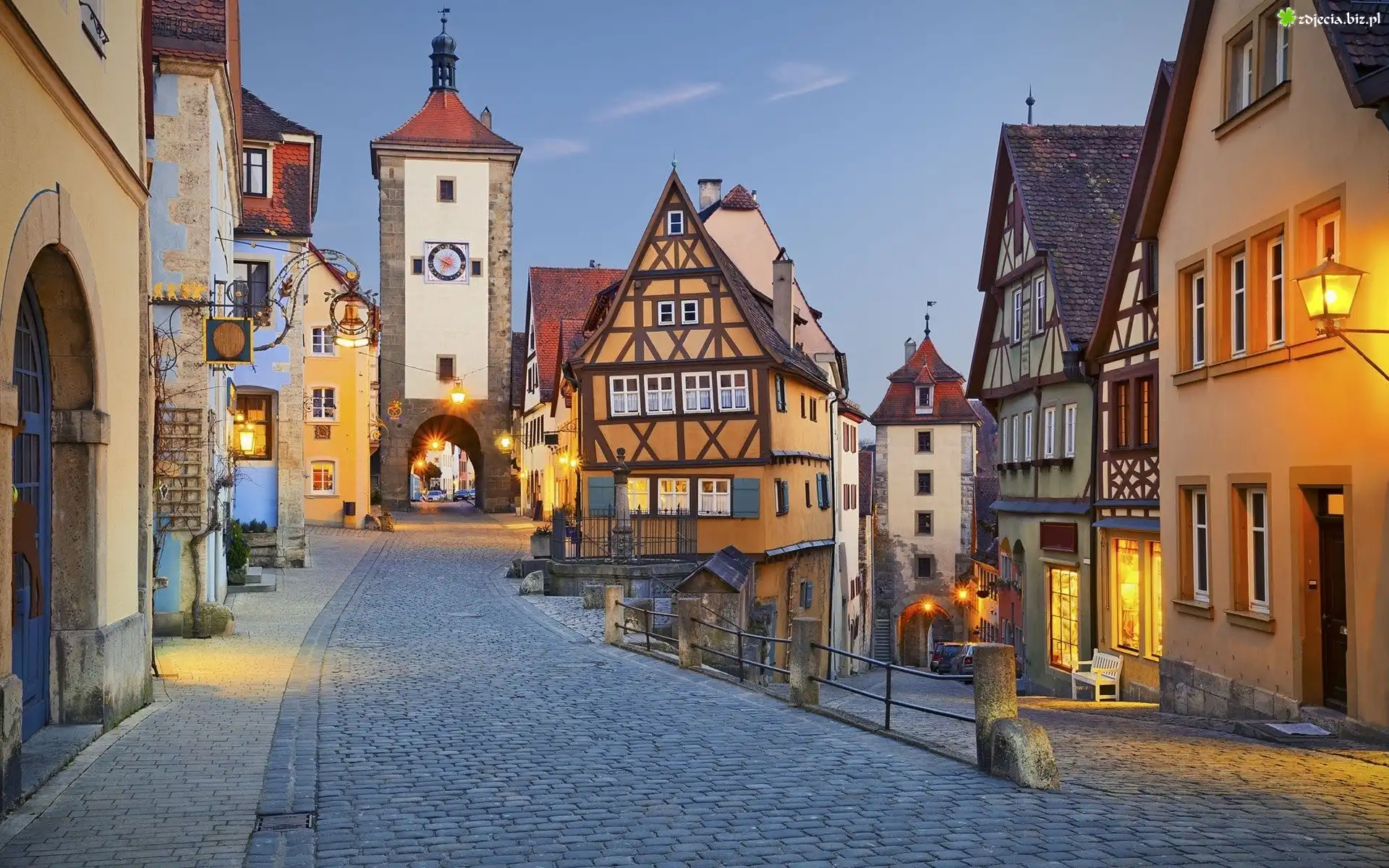 Zdjęcie Niemieckie, Miasto, Domy, Bruk, Wieża, Zegarowa