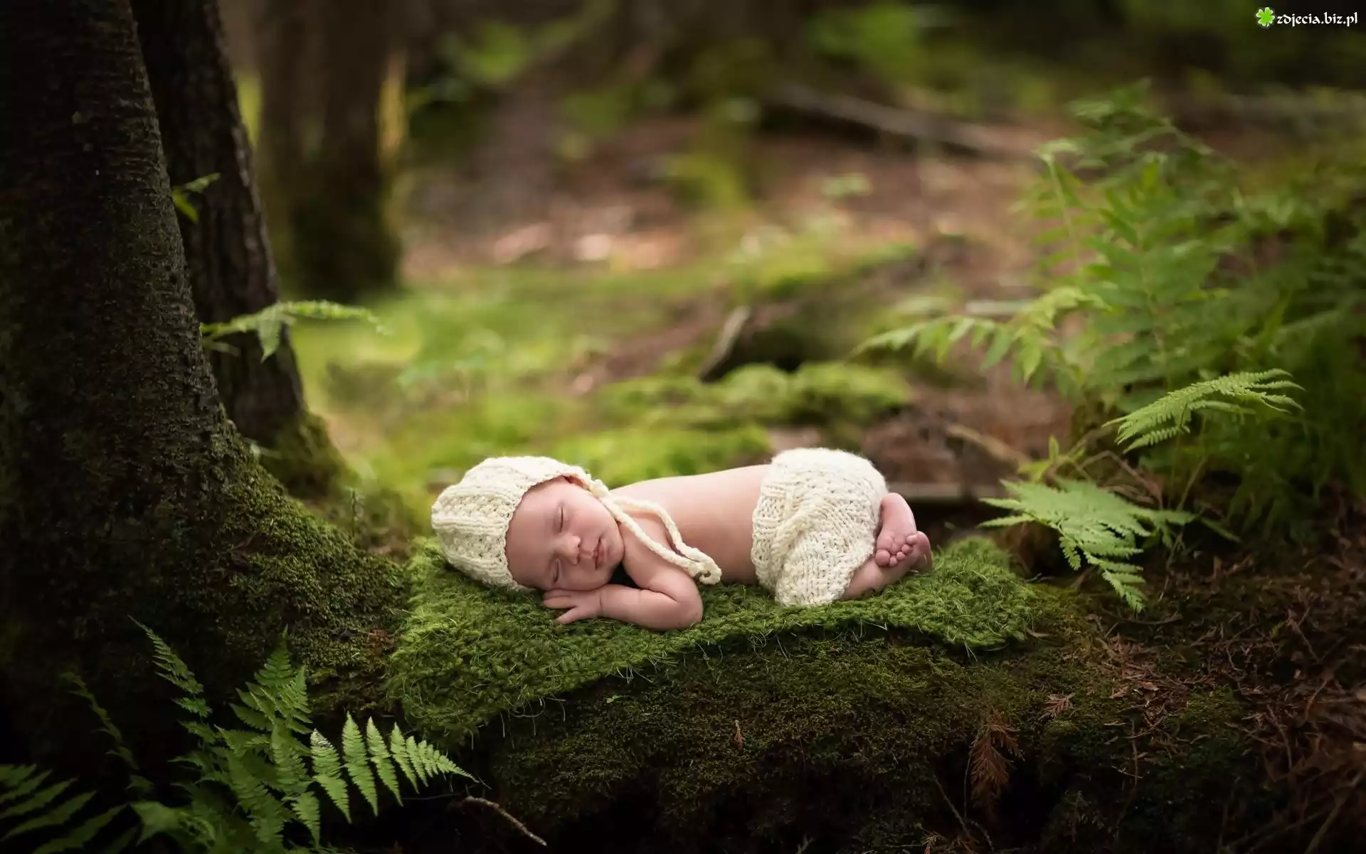 Zdjęcie Niemowlę, Las, Drzewa, Paprocie