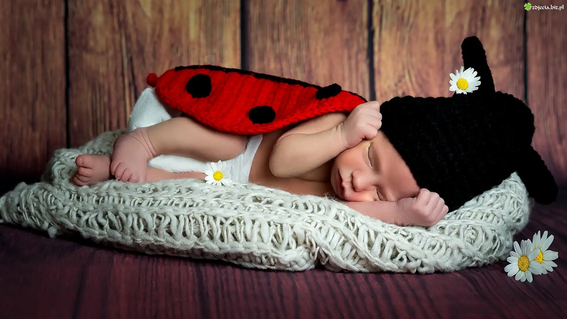 Zdjęcie Dziecko, Niemowlę, Sen, Biedronka, Dzianina, Czapka, Kwiatki, Koc