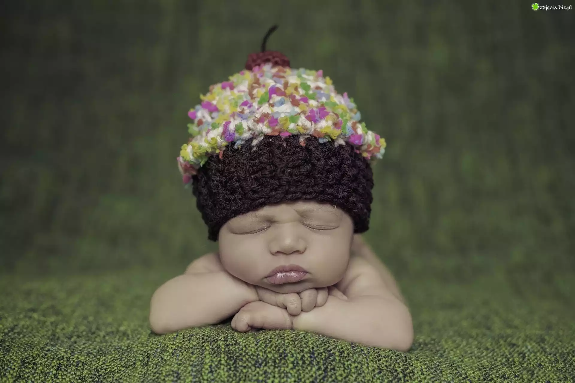 Zdjęcie, Śpiące, Niemowle, Czapka, Dzianina