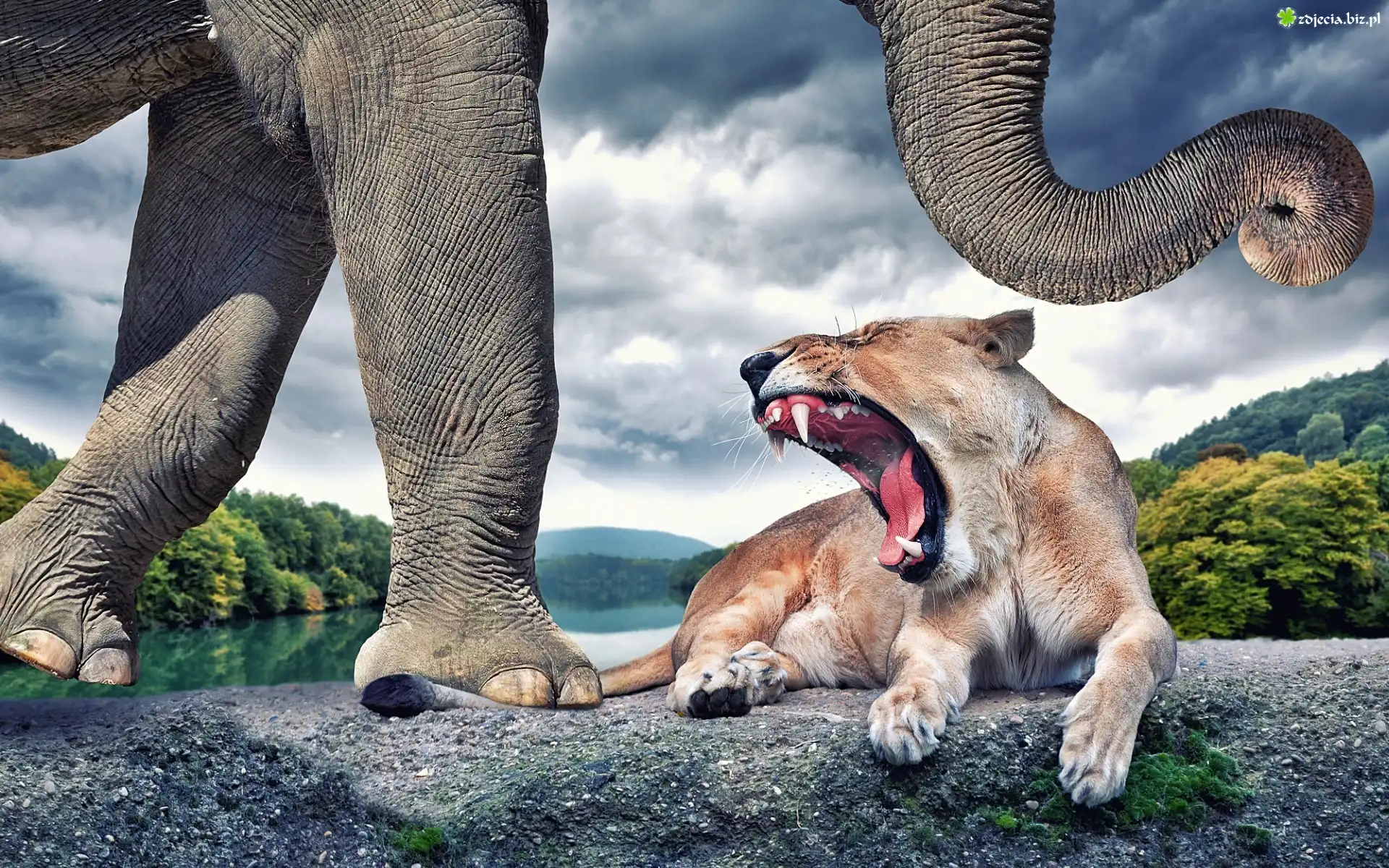 Zdjęcie Nieostrożny, Słoń, Lew, Śmieszne