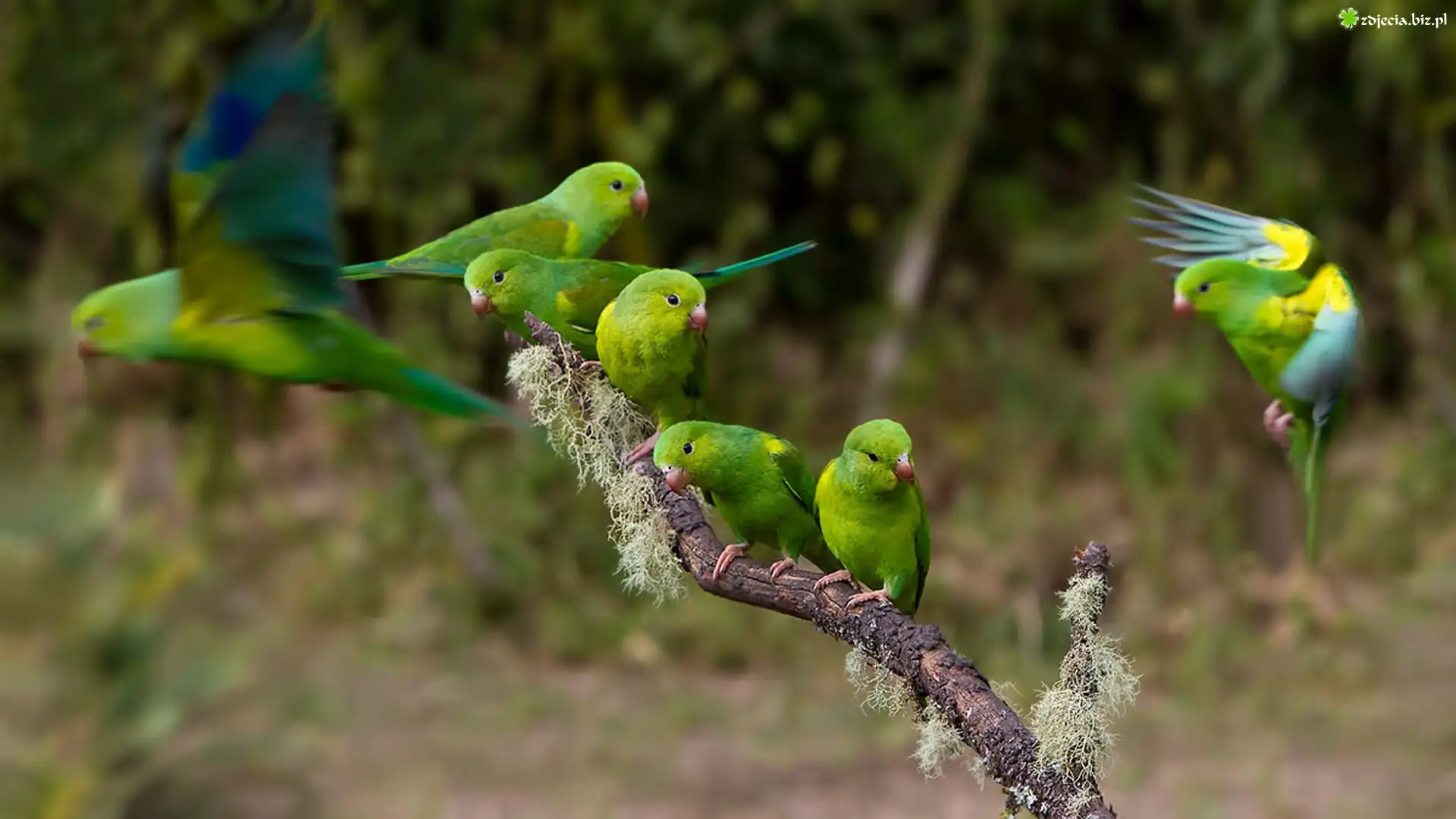 Zdjęcie, Papugi, Nierozłączki, Gałązka