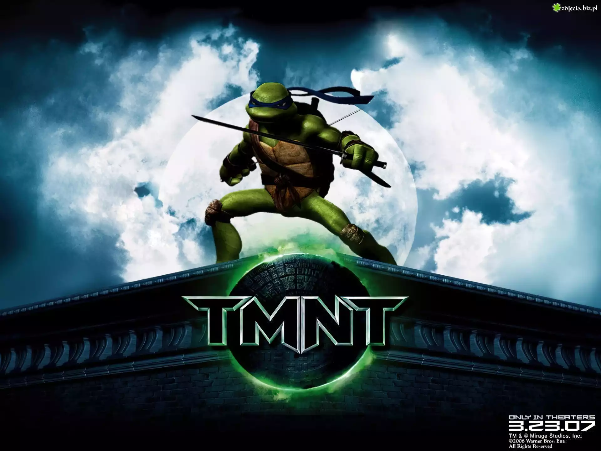 Zdjęcie Wojownicze Żółwie Ninja, dach, księżyc, miecz, chmury