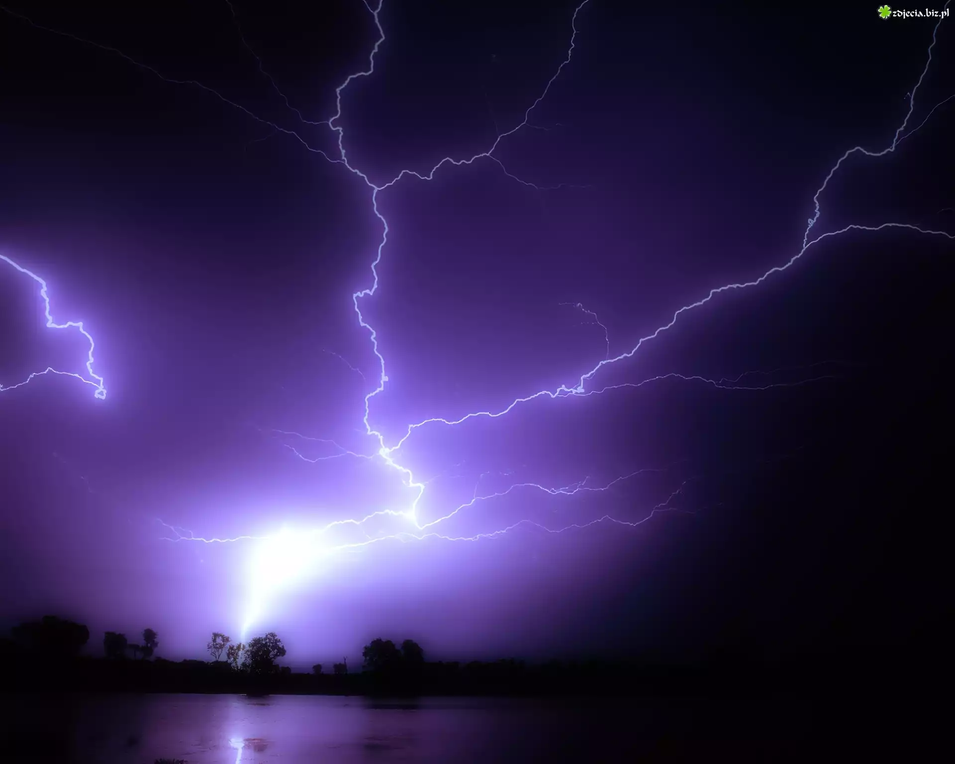 Zdjęcie, Błyskawice, Noc, Jezioro